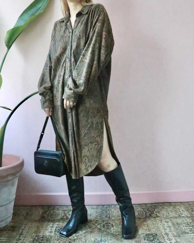 BRAND【ー】 SIZE 【ー】裄丈 : 約84cm/ 身幅 : 約60cm / 着丈 : 約112cm 付属品 【ー】 素材 【ー】 状態 【USED】 MEMO 深みのあるカラーにパイソン柄が美しく映える、スエードのロングシャツ。ほどよいゆとりのオーバーシルエットと、サイドスリットが抜け感をプラスし、ロングブーツとの相性も抜群。ワンピースとしてもパンツやロングスカートとの合わせも◎幅広いコーディネートで楽しんで。 着用スタッフ身長163cm ▲Shipping International is AVAILABLE ▲こちらの商品は店頭商品として同時販売しております。 ご注文頂いた時点で商品が欠品している可能性もございます。 自動で送信されるご注文メールの後に、再度在庫を確認後、 商品が欠品していた場合は[email protected]より 『商品欠品メール』をお送り致します。 その場合いただいたご注文はキャンセルになりますのであらかじめご了承のほどお願い致します。 ▲新品商品ではございません。 ▲寸法には、多少の誤差がある場合がございます。 特に伸縮性のある素材やデザインのものについては目安としてお考えください。 各商品のサイズや状態をもっと詳しくお知りになりたい場合は、お気軽にお問い合わせください。 ▲当店で扱う古着、古物につきまして、経年に伴う変色やキズ等は、返品の対象及び不良品となりません。一見して目立つものは説明文や写真で紹介していますが、当店で目立たないと判断したものは説明を省いています。 古着特有の雰囲気や魅力ををご理解いただいた上でご注文願います。 こちらの商品に関するお問い合わせはVini vini 03-3477-7378までお願い致します。