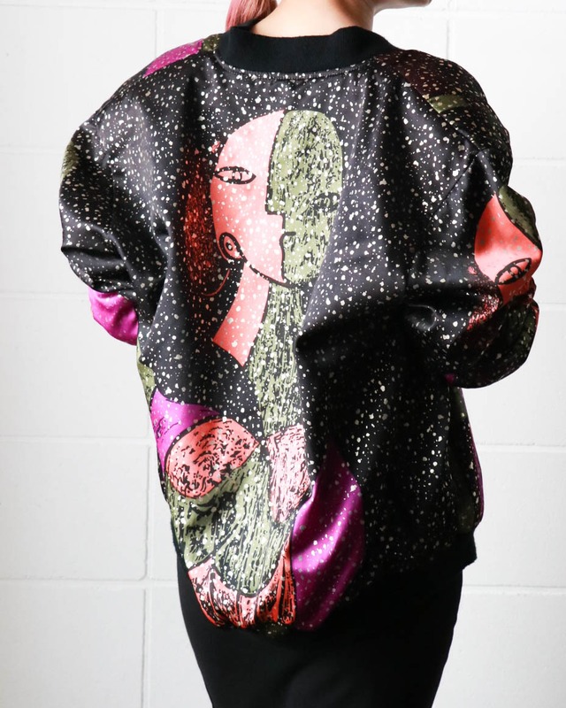 80's Picasso motif print golden dots blouson
