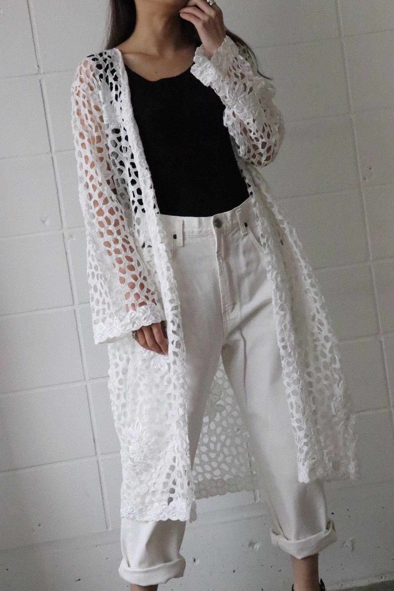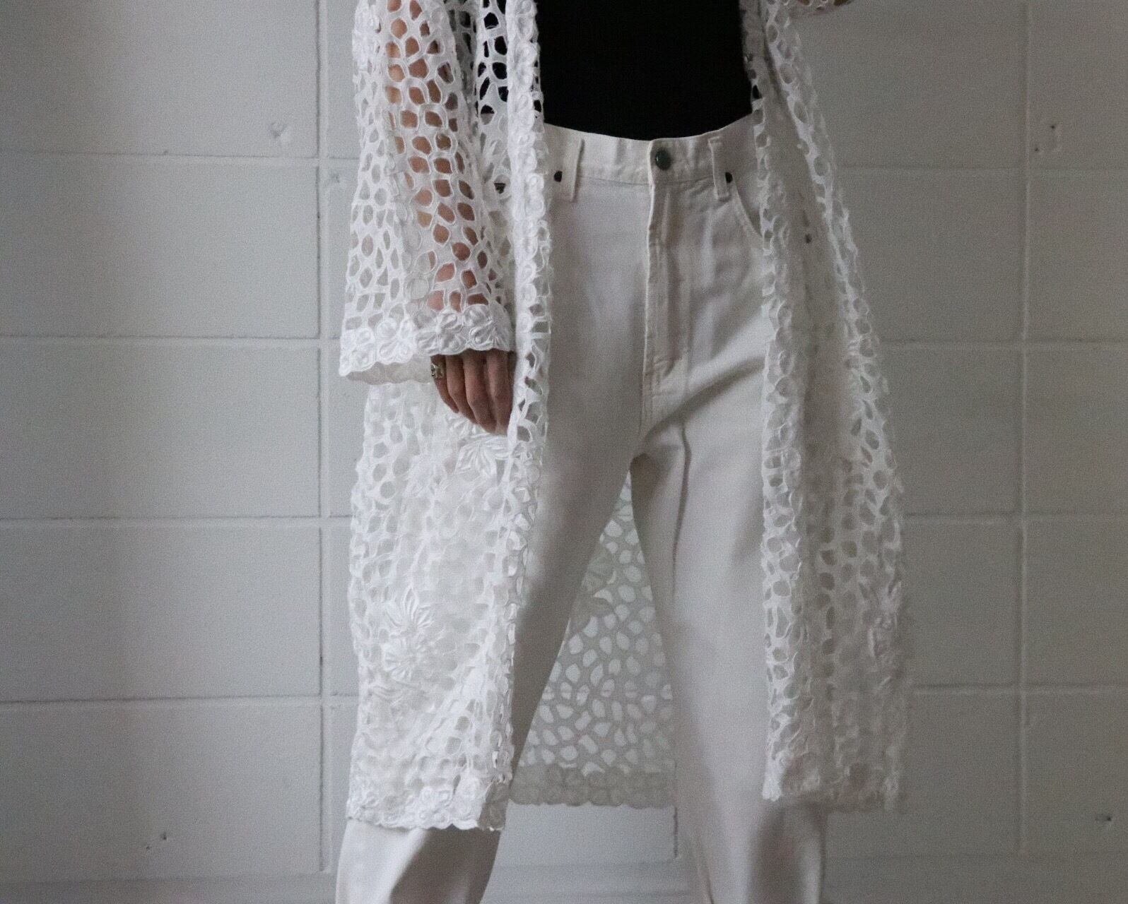 存在感のある真っ白なカットワークのレースガウンが入荷しました