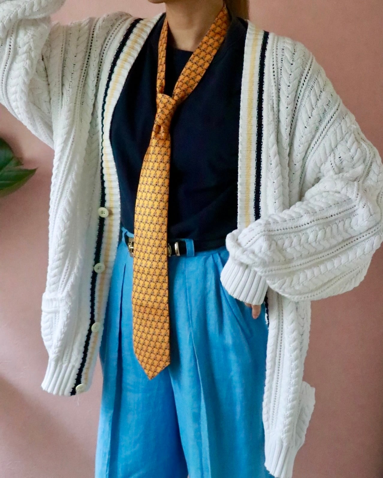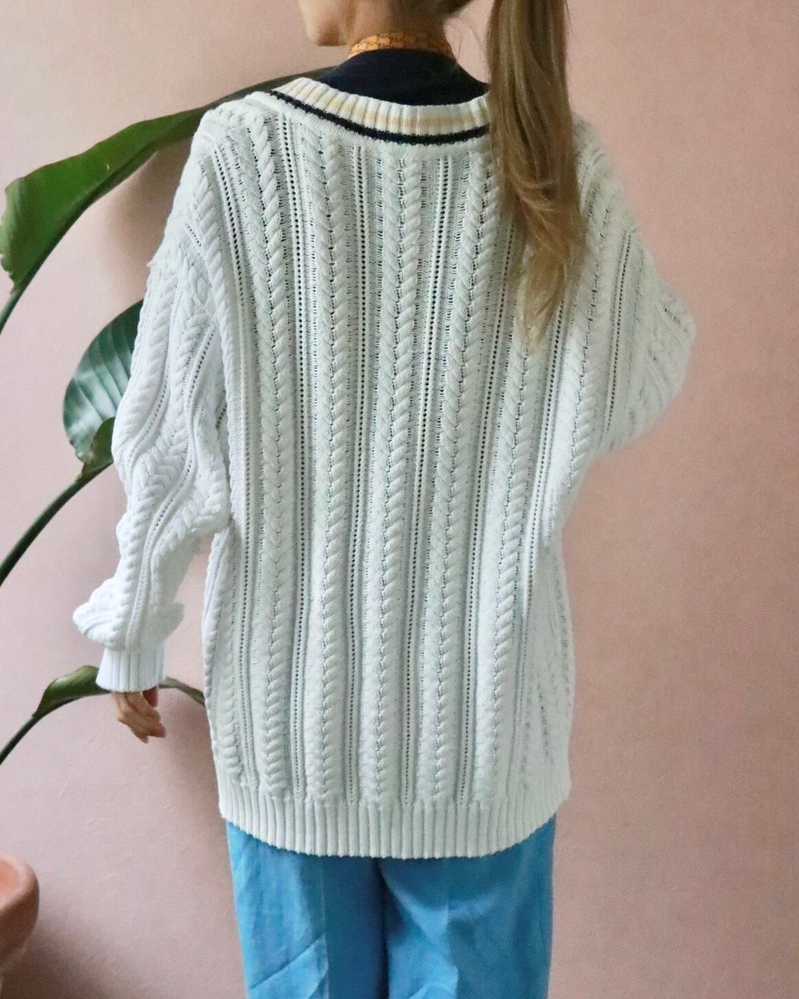 ケーブル編みとコットンの絶妙な組み合わせでどこか温かみのある雰囲気もあります。