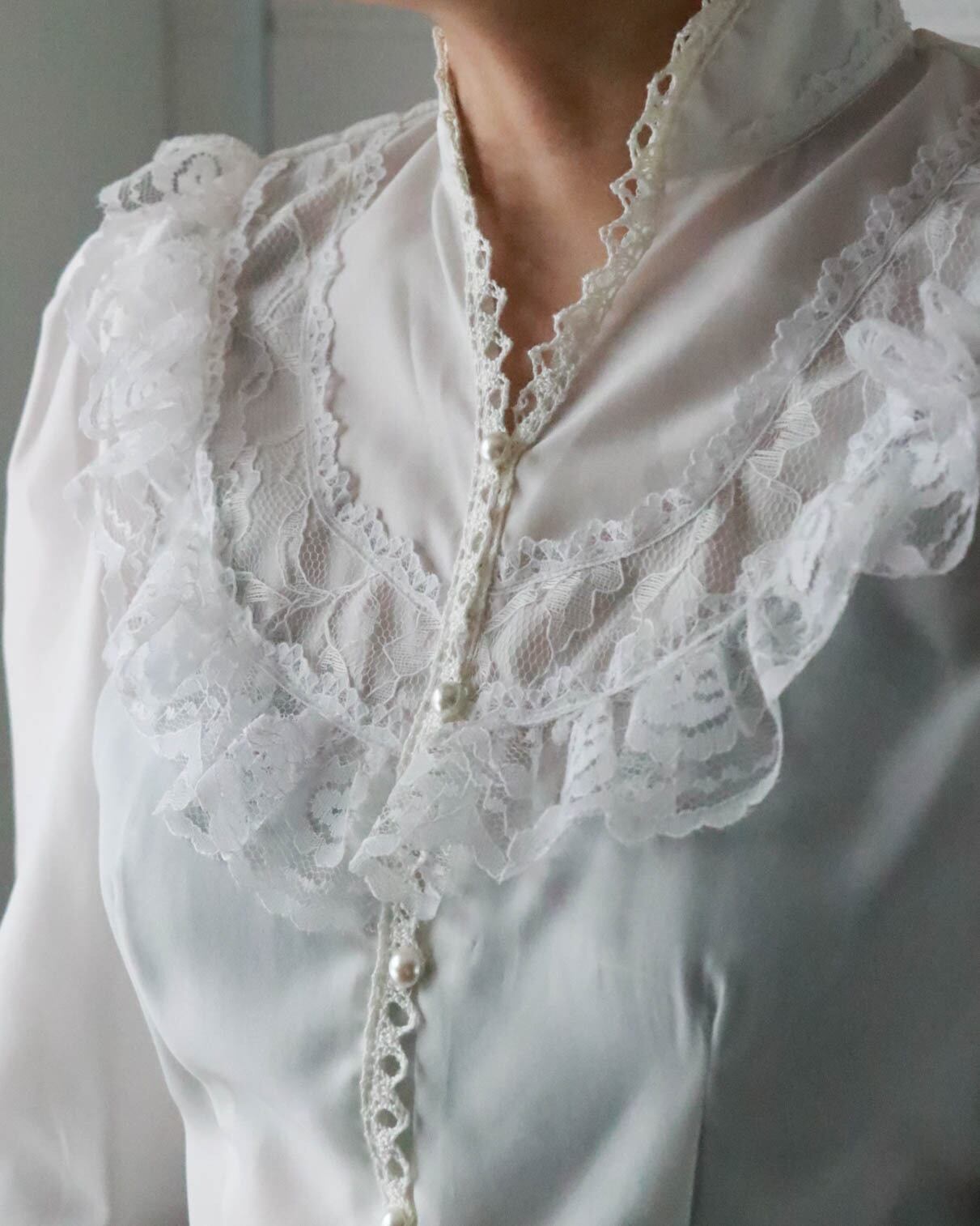 80s deadstock white laced blouse