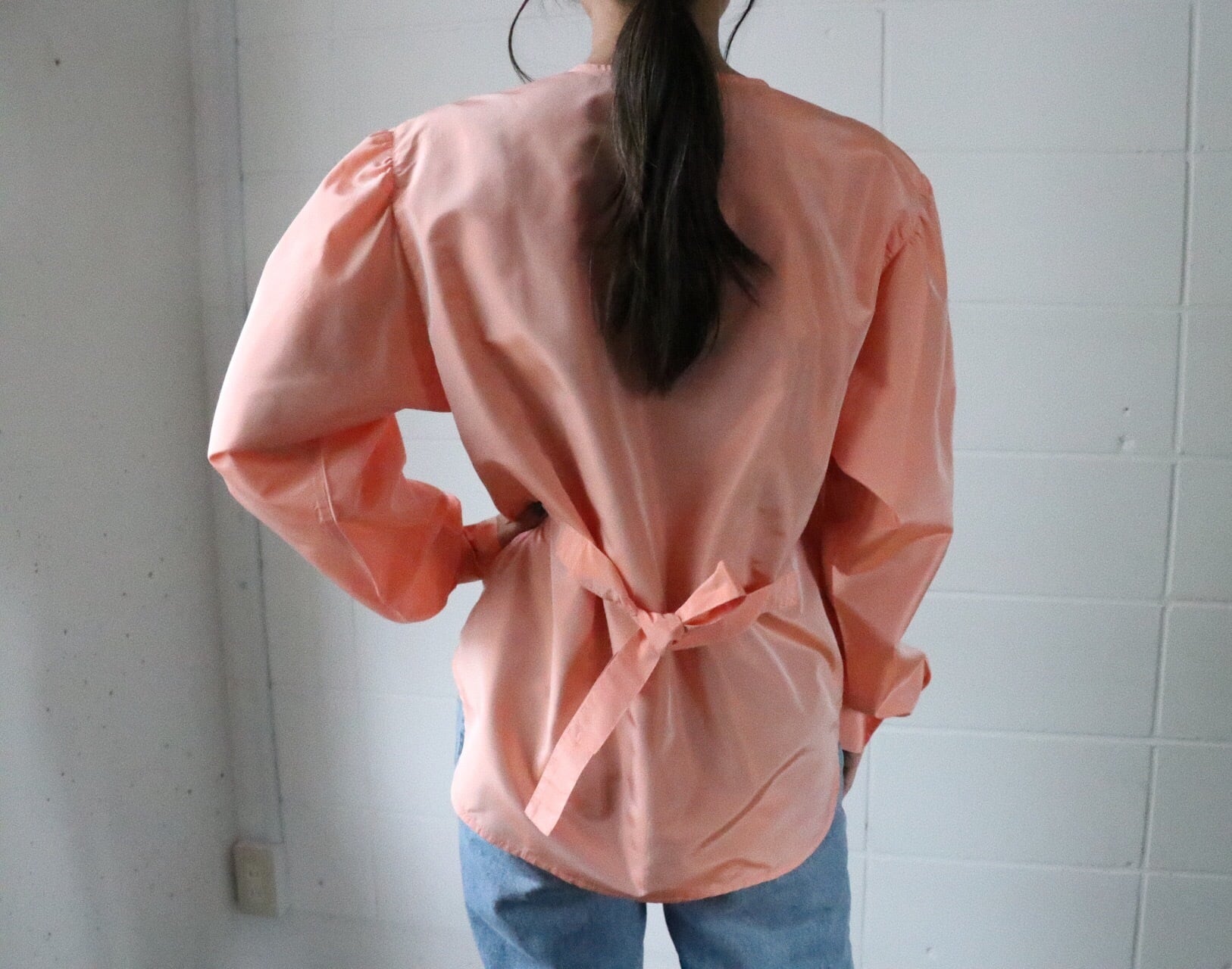 前ボタンで後ろ身頃にはベルトリボンが付いていて、羽織として着てもトップスとして着ても可愛い一点