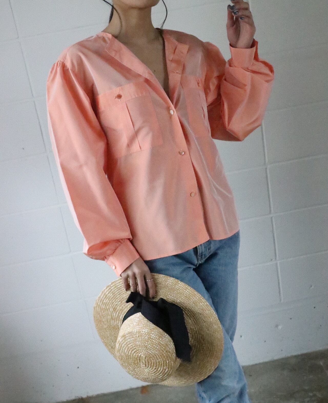 ワンカラーのブラウスなのでボトムズは写真のように柄物のボトムズやデニムと合わせて春ファッションをお楽しみください!