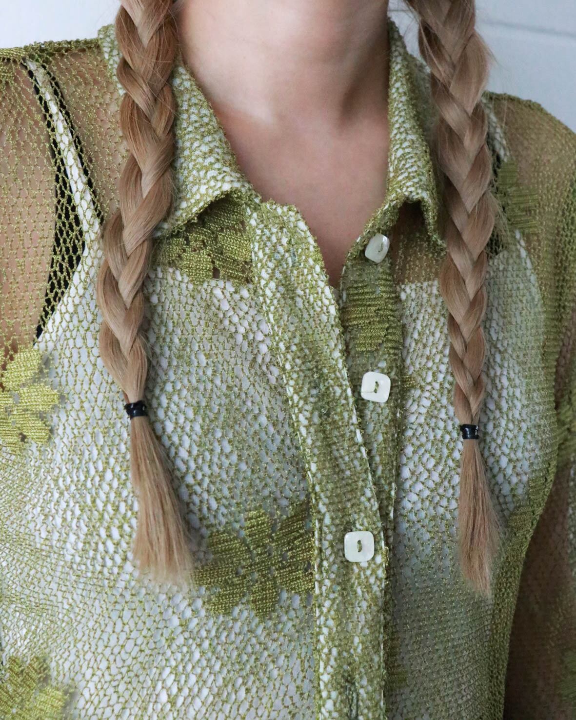 羽織るだけで気分まで軽やか。ゴールドカラーの繊細な網目とフラワーパターンが魅力のヴィンテージブラウス。コーデにプラスするだけで、いつもの装いがグッと華やかに。