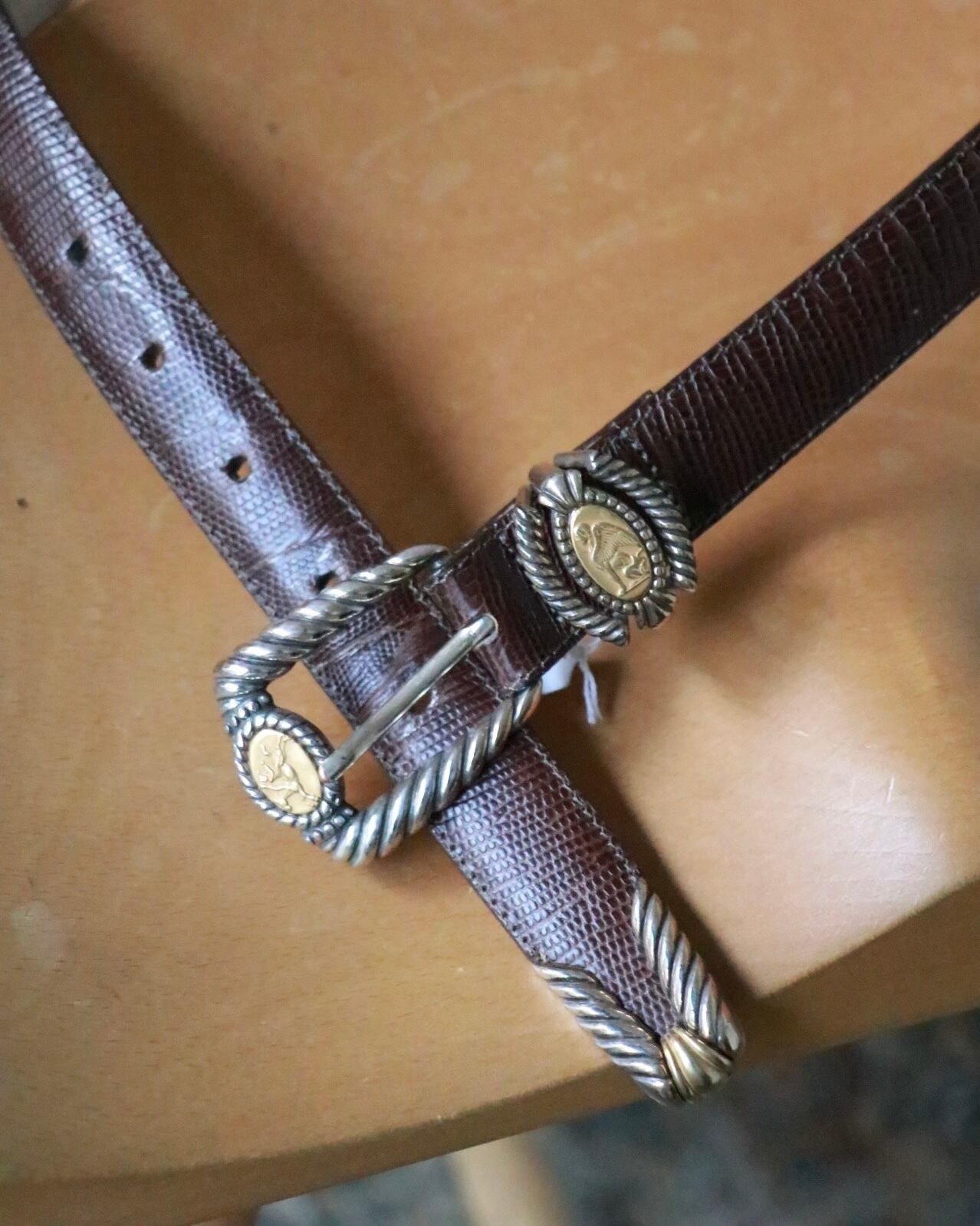 こちらは、合わせやすいブラウンレザーにシルバー&ゴールドの金具が映える一品。