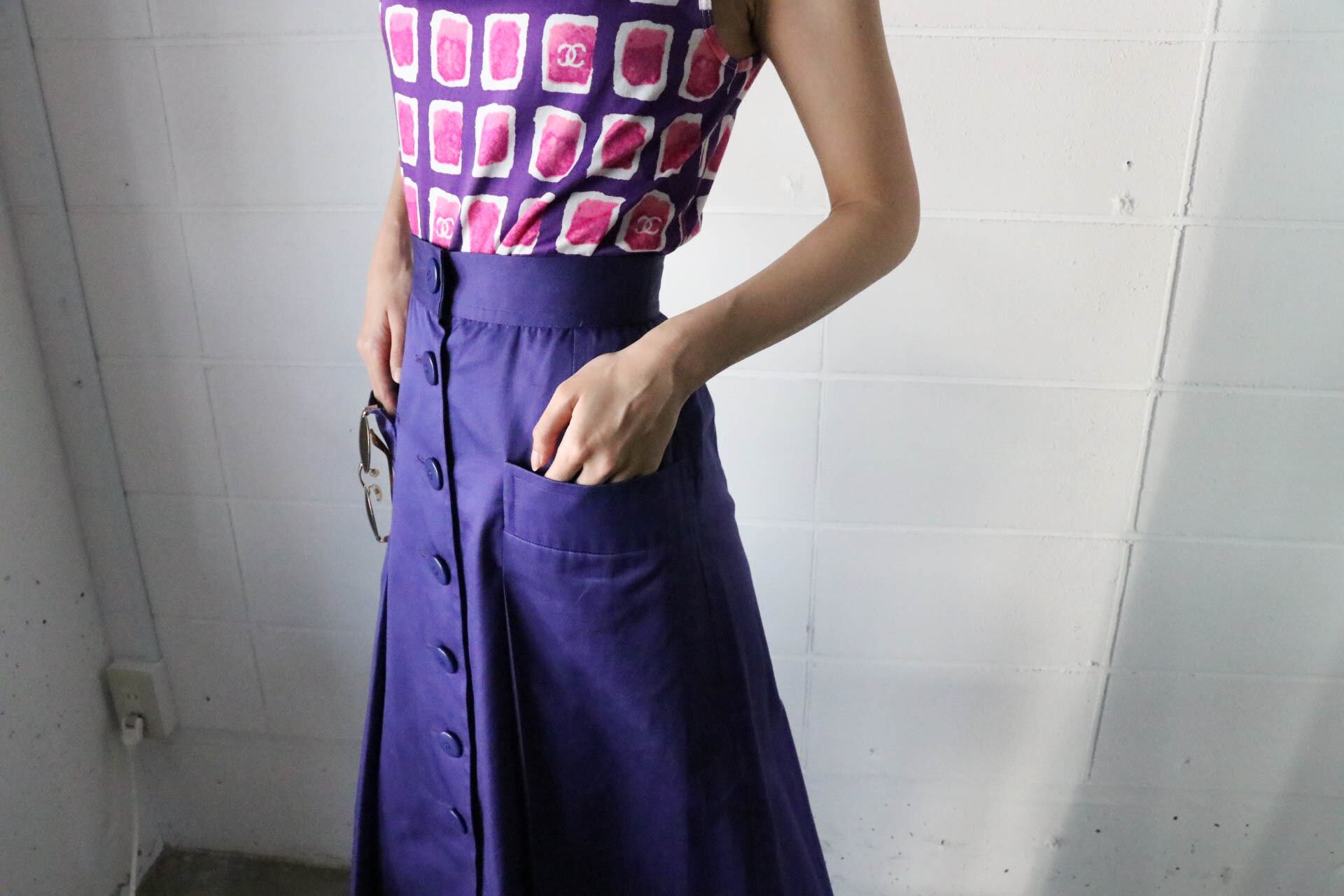 ブルーバイオレットカラーが際立つスカート。