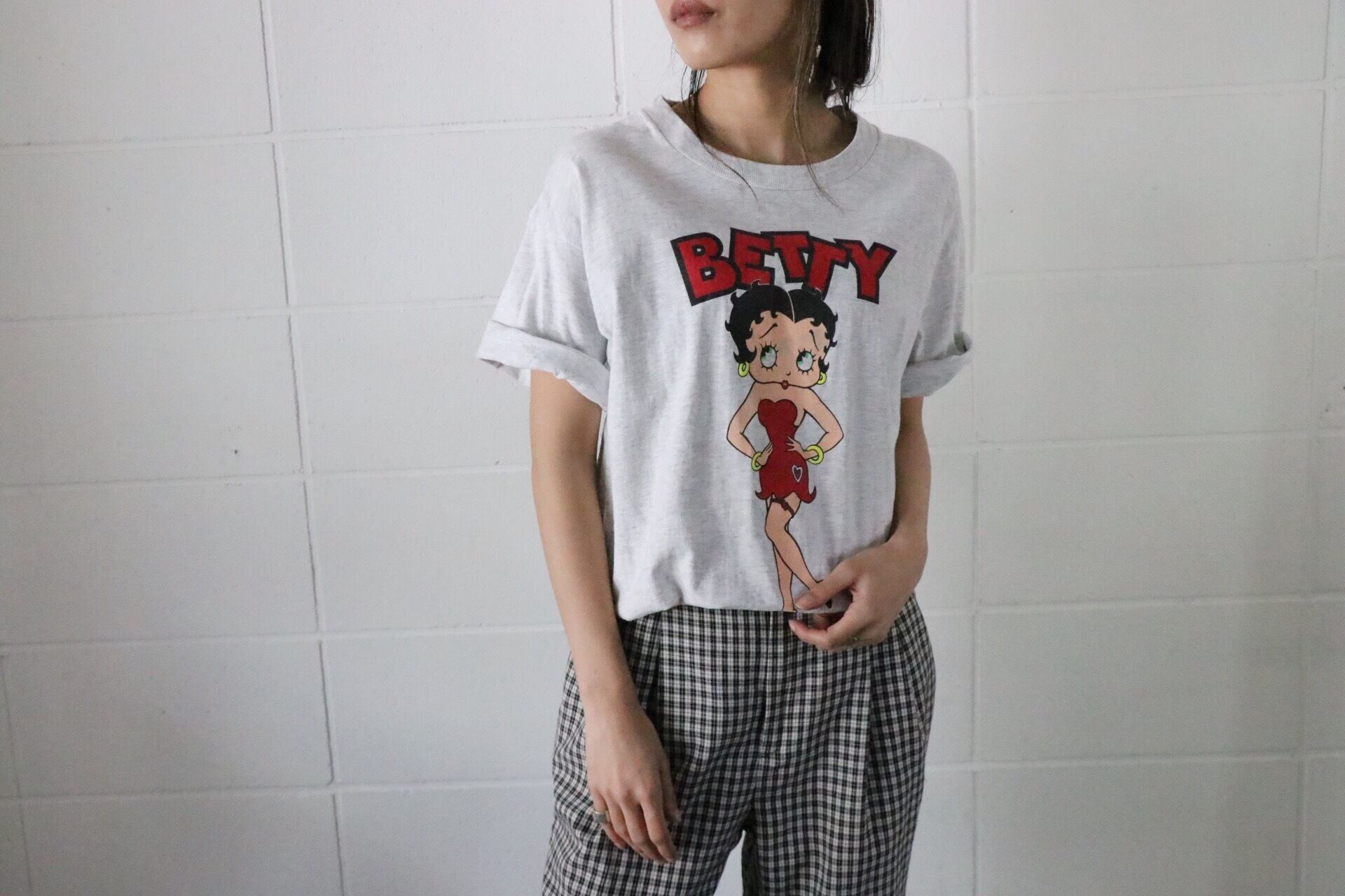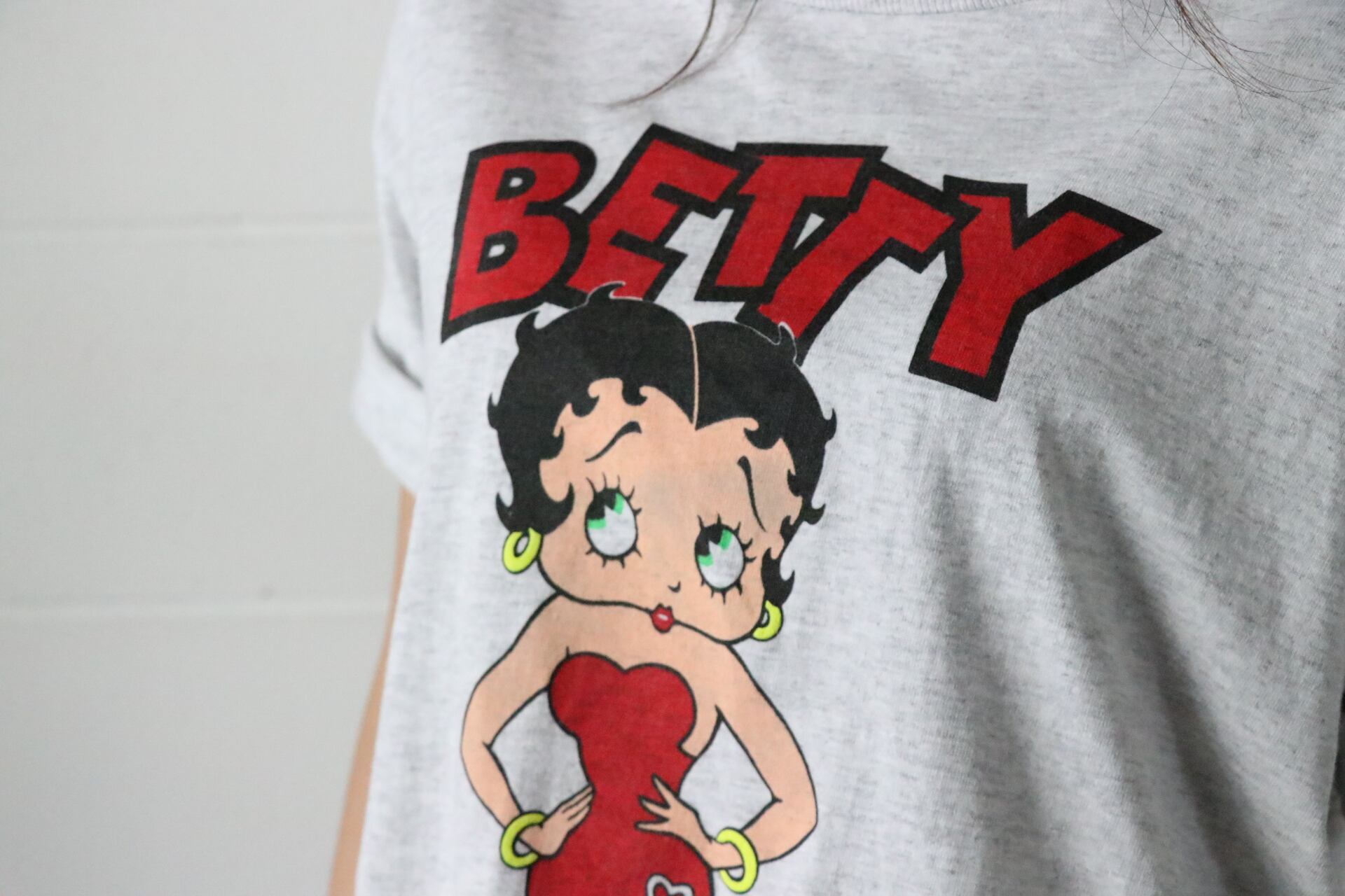 キュートかつセクシーなルックスで世界中のファンを虜にし続けるアメリカ生まれのベティちゃん♪遊び心あるポップなデザインTは、外しアイテムに最適です。長め着丈なので、INした時とOUTした時の印象をガラッと変えられます。デニムやカラーパンツと合わせて、春夏のコーディネートを楽しんでみては。