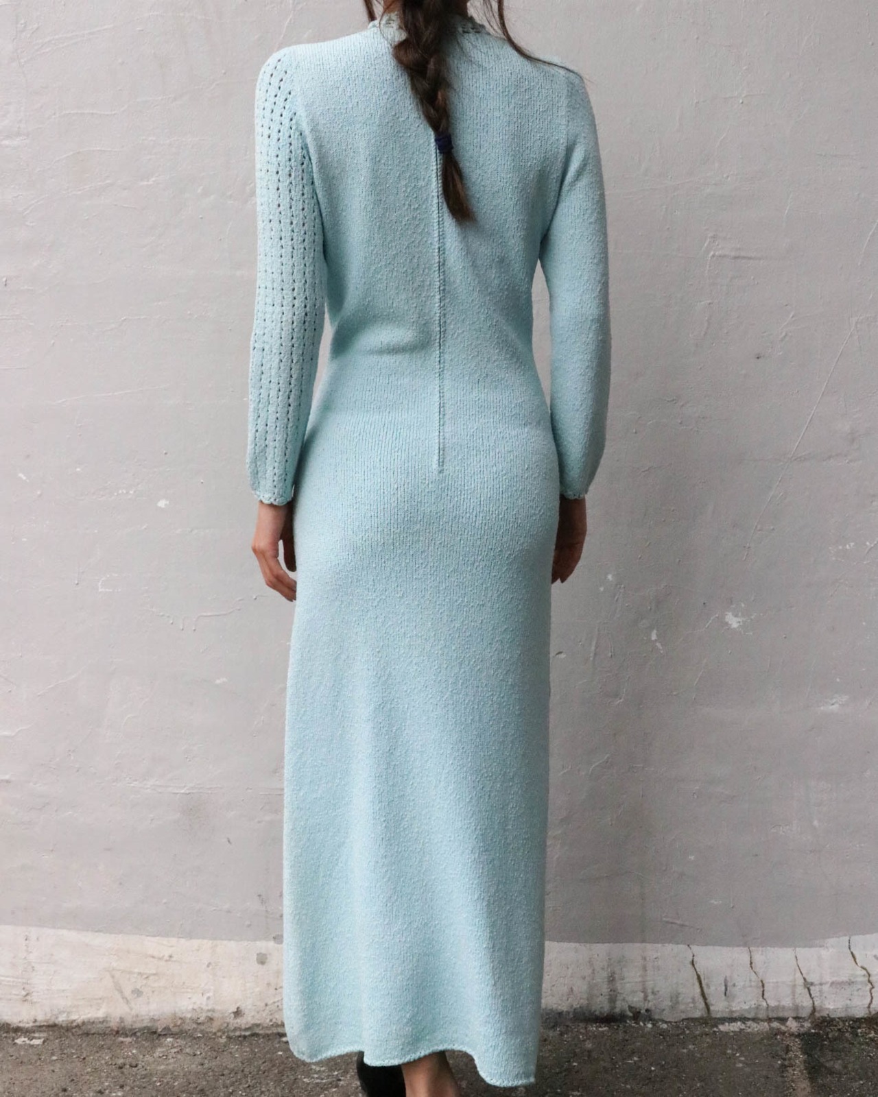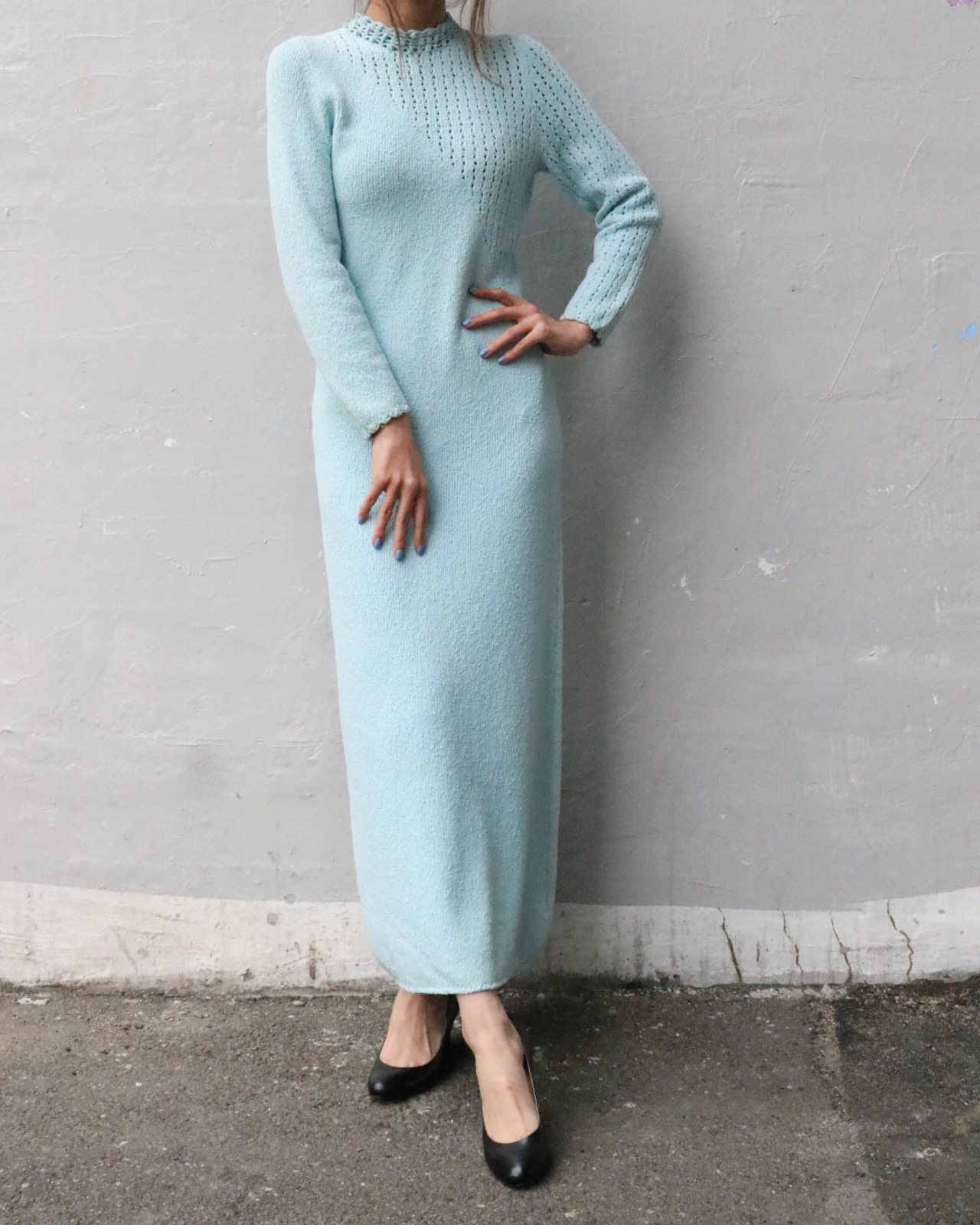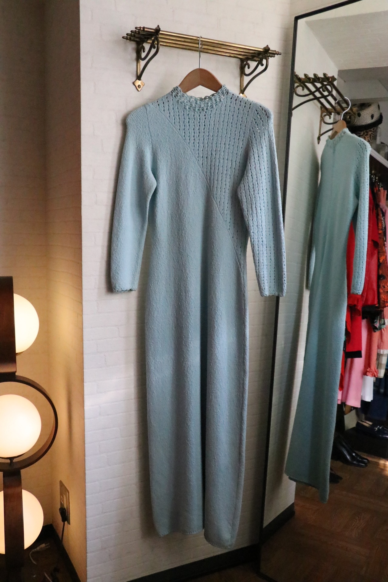 初夏香るスカイブルーのスプリングニットワンピースは、1970年代のもの。