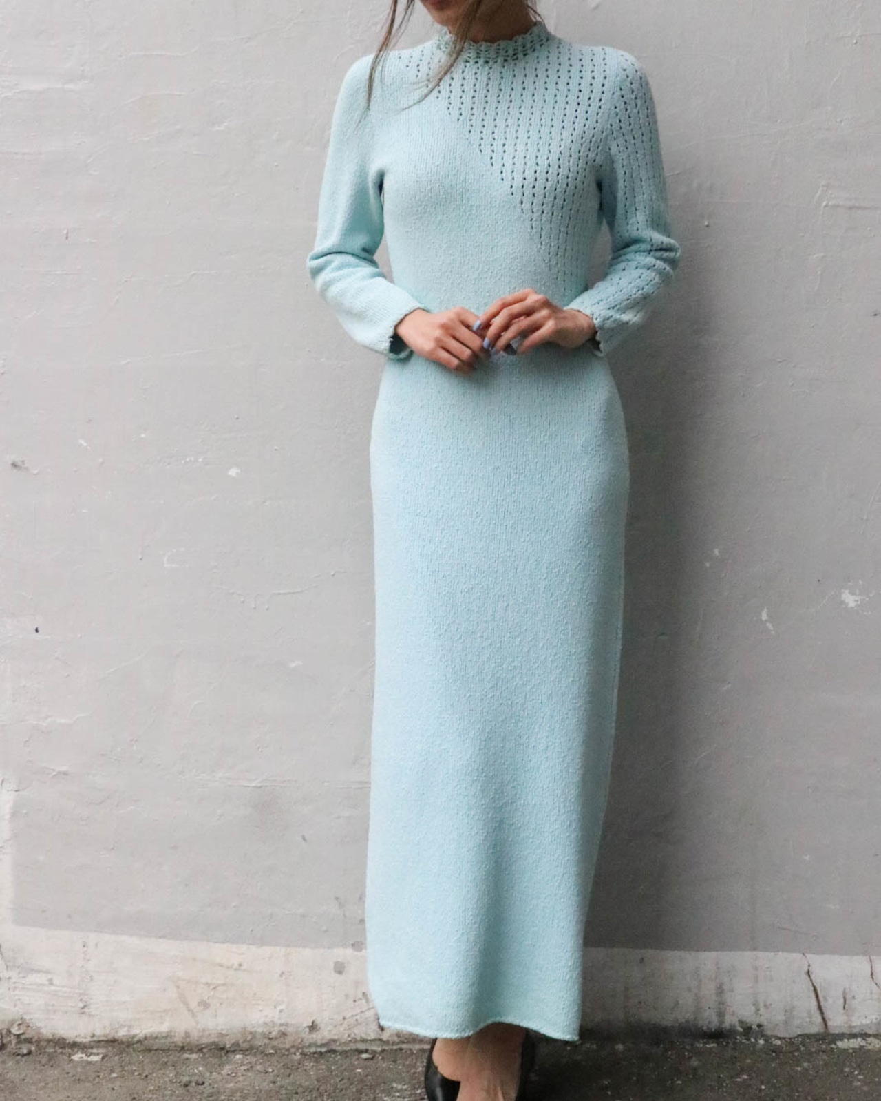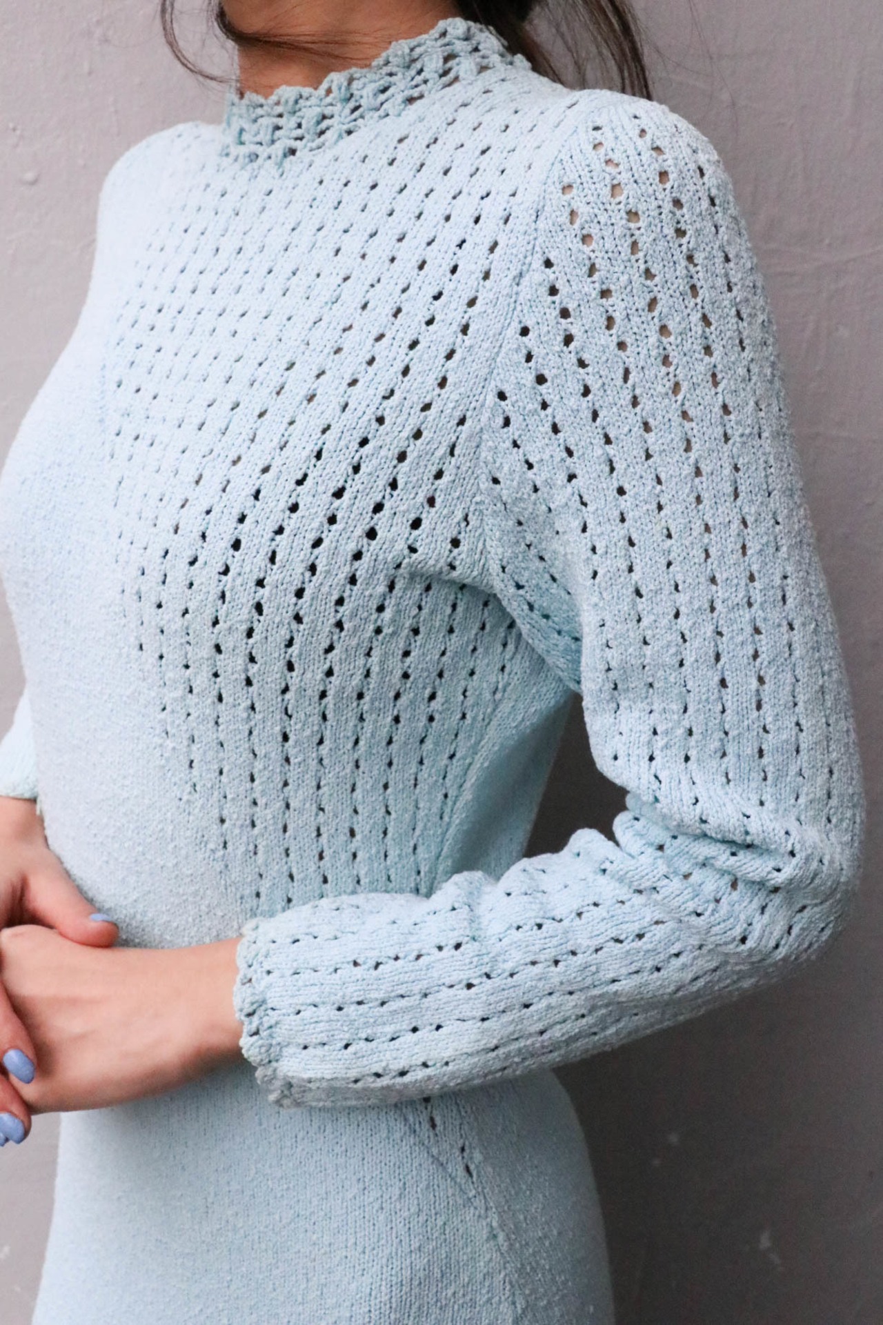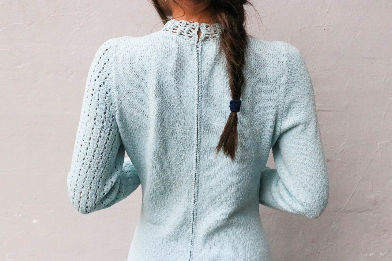 初夏香るスカイブルーのスプリングニットワンピースは、1970年代のもの。