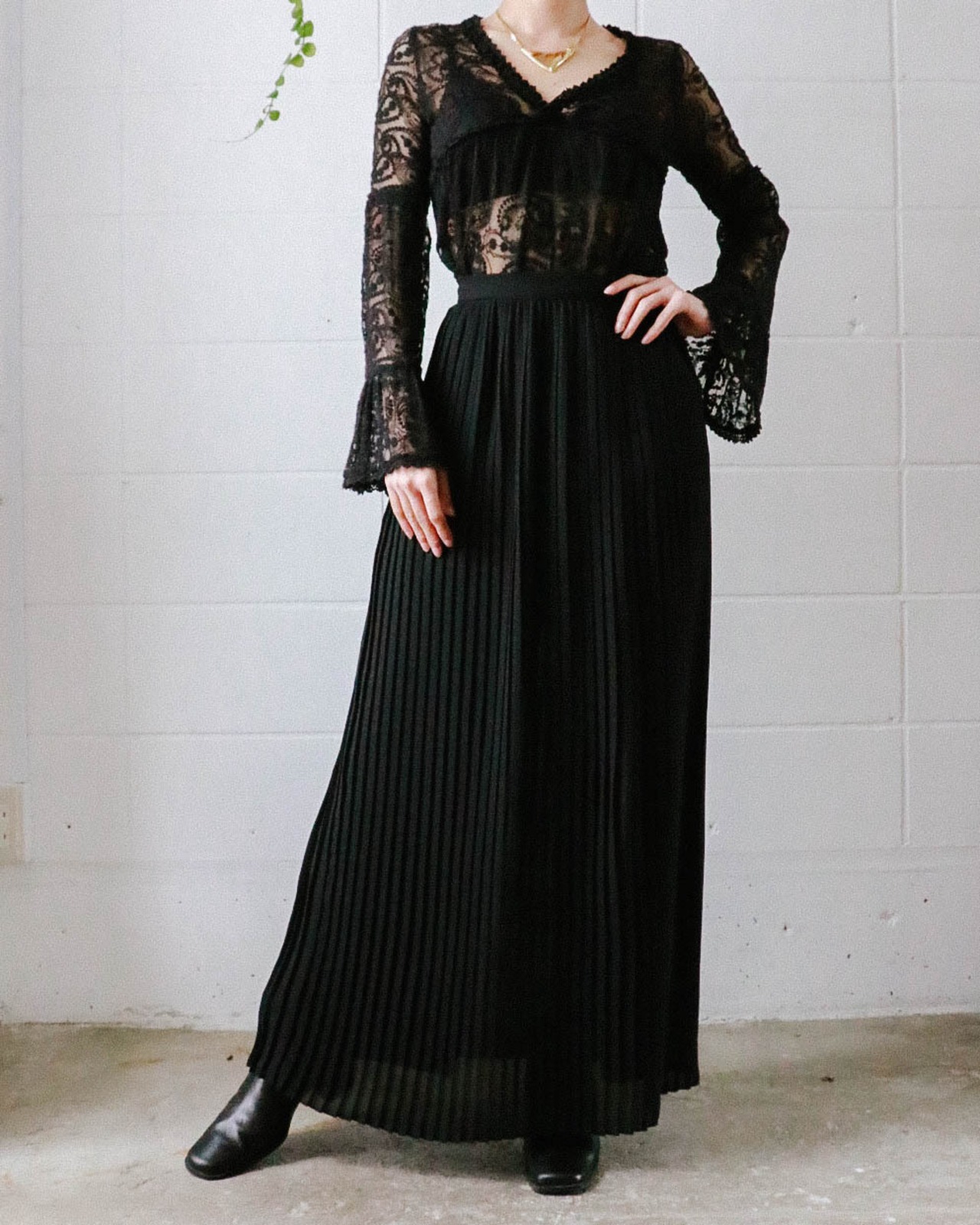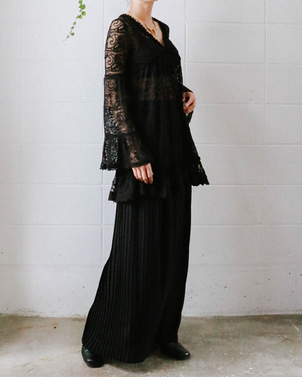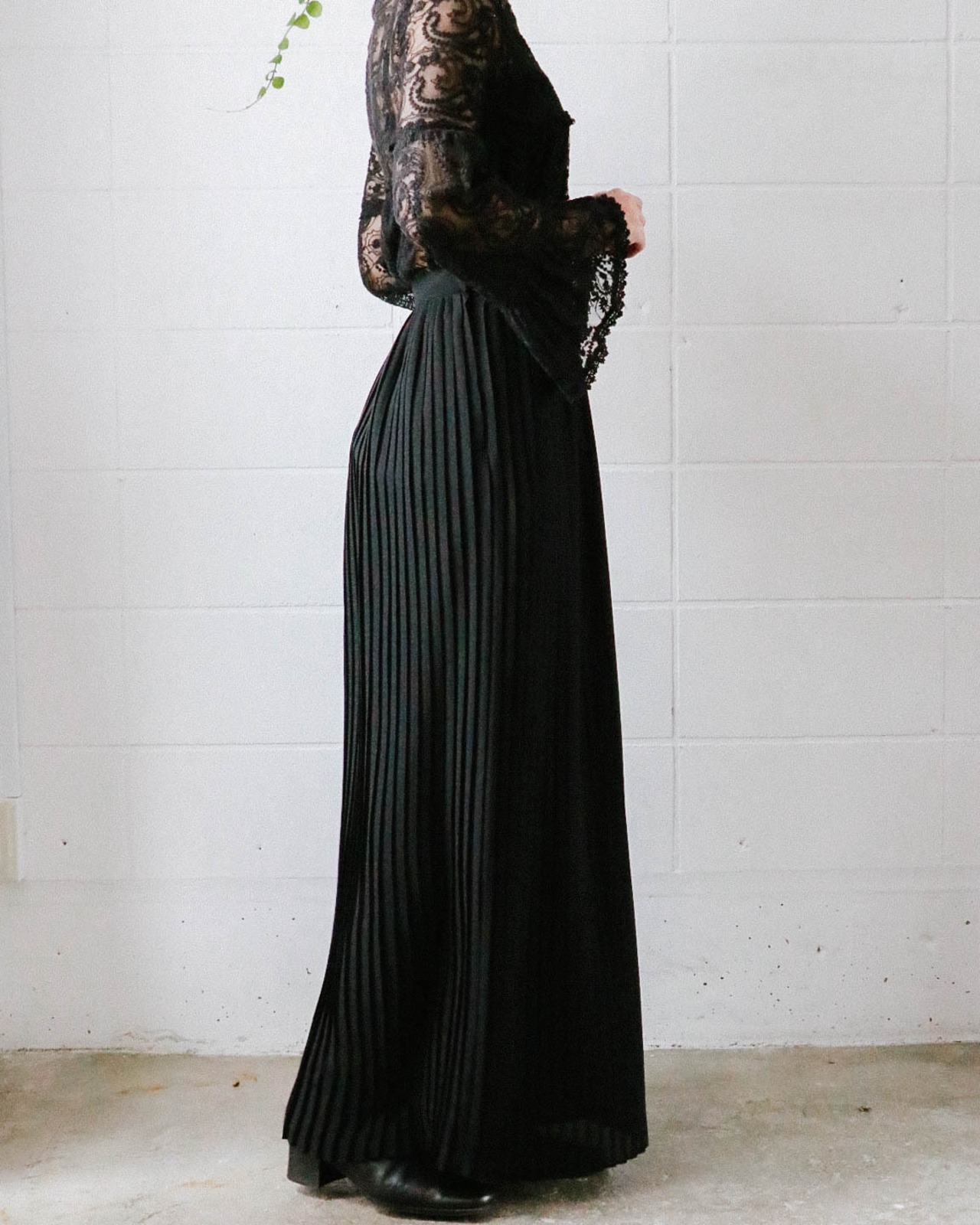 80's black pleats skirt
