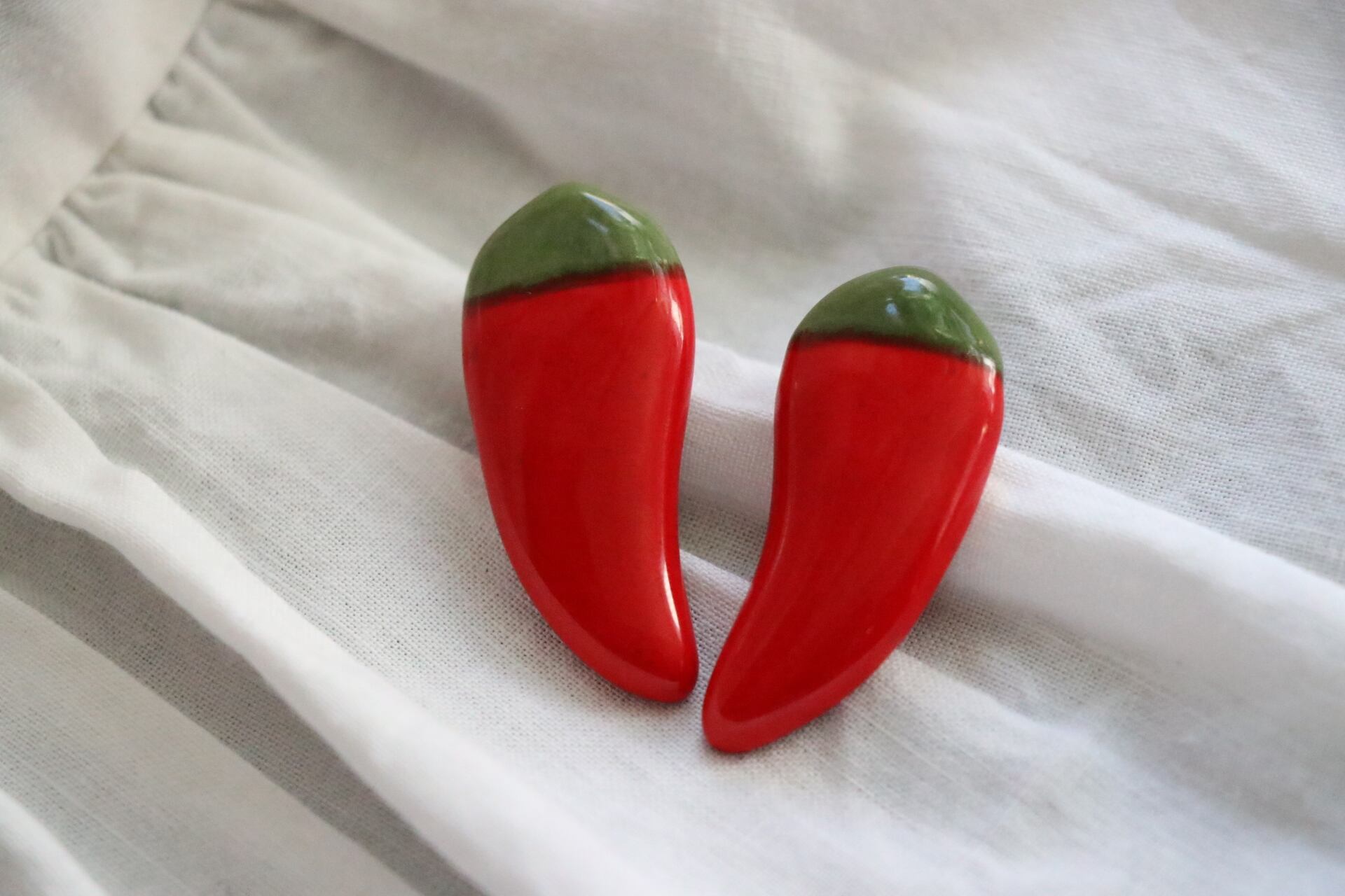 ポップでホットなピアスが入荷いたしました!七宝仕立ての唐辛子デザイン。