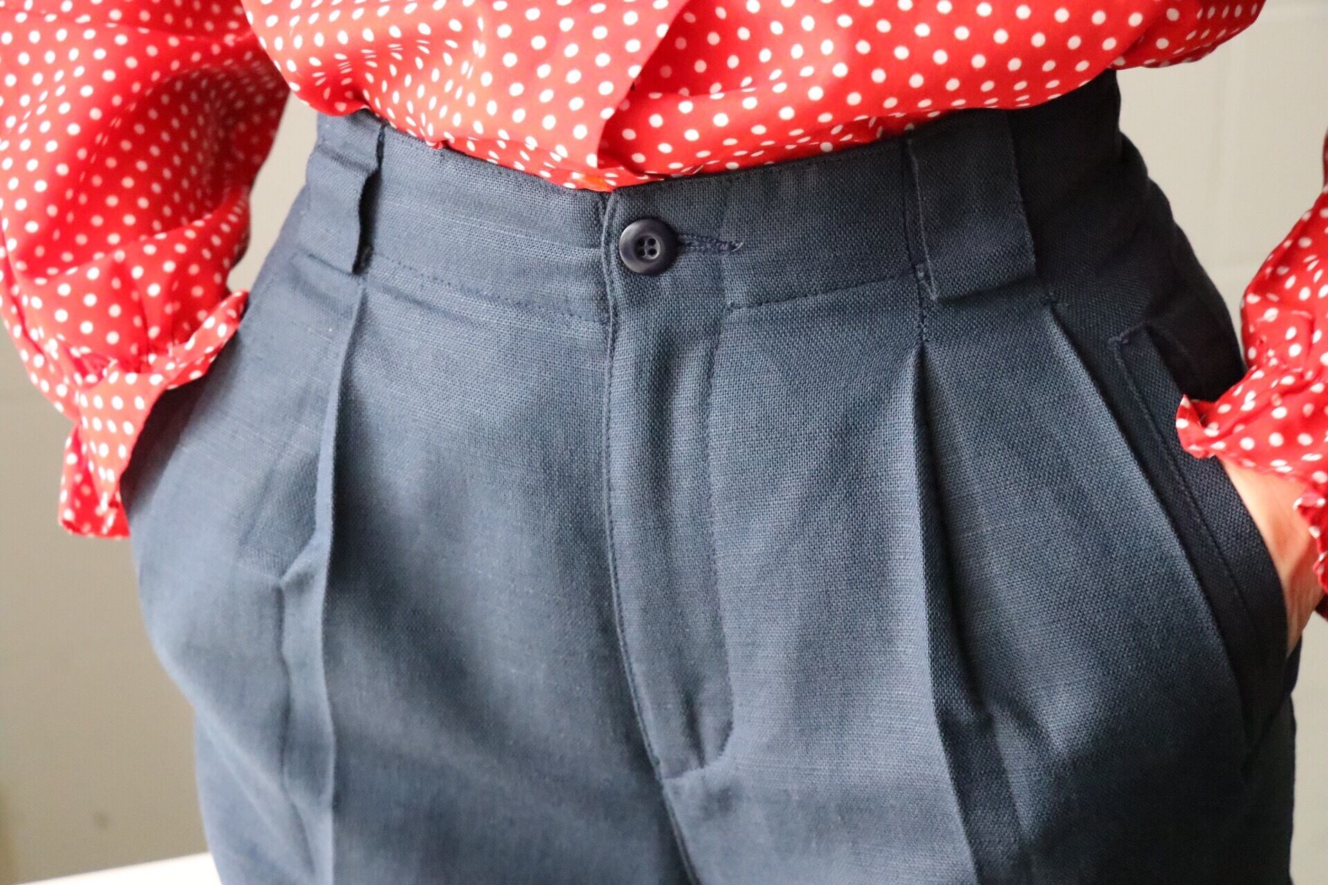 ハイウエストのフロントプリーツ、太めのベルトループ