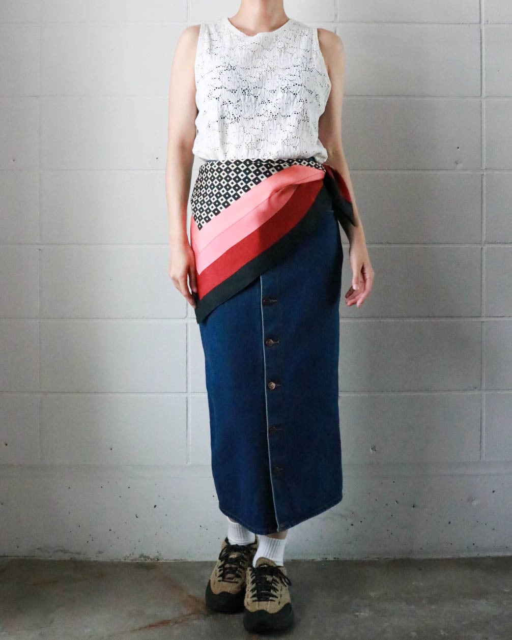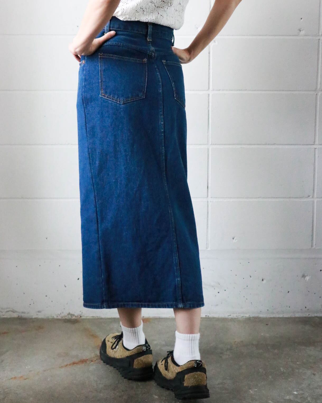 デニムスカートが入荷。タイトシルエットならデニムも品良くまとまる。