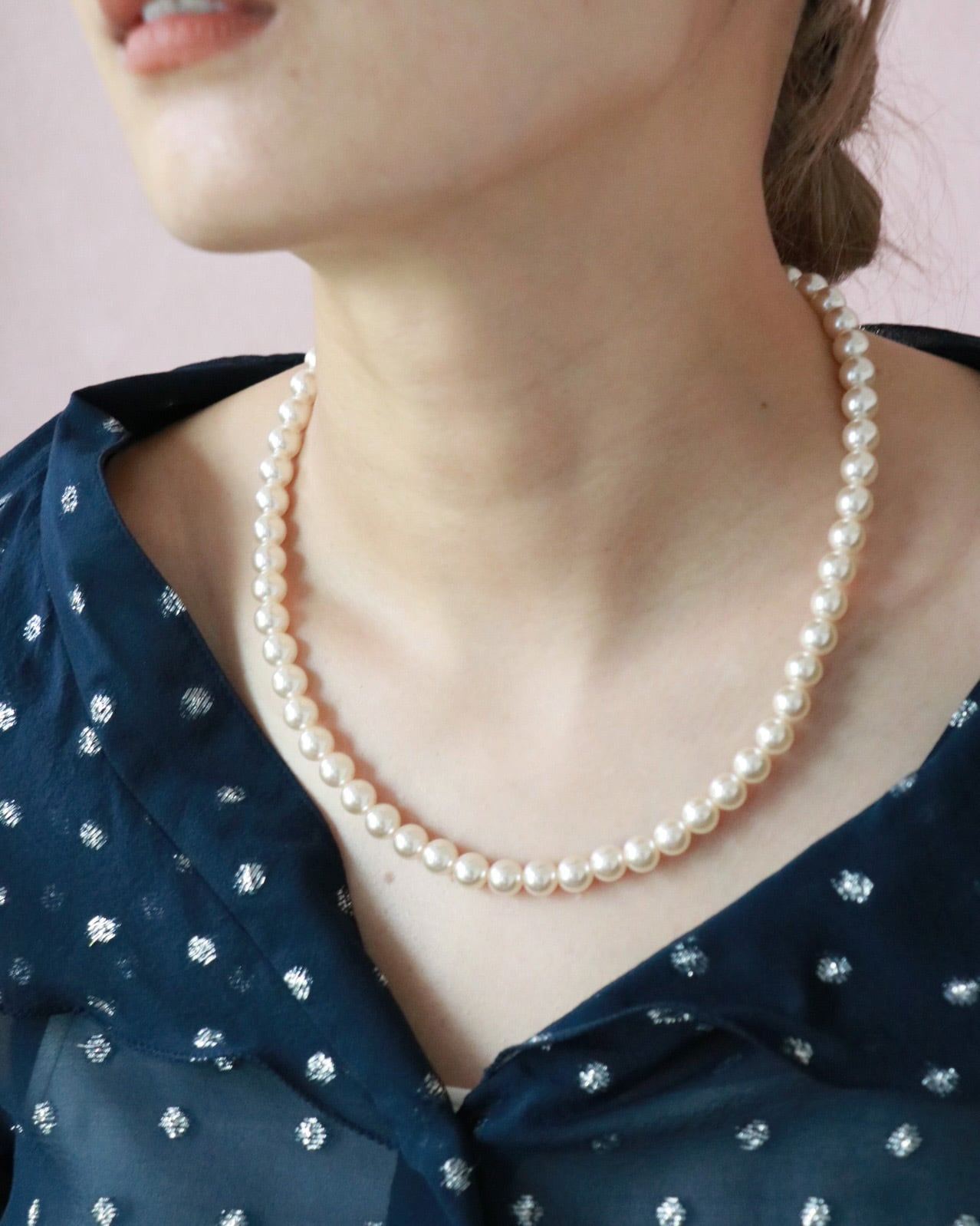 オケージョンにはもちろん、カジュアルなスタイリングにも合い、チョーカー感覚でお使いいただけます。ゴールドやシルバーのネックレスと重ねづけが今の気分!