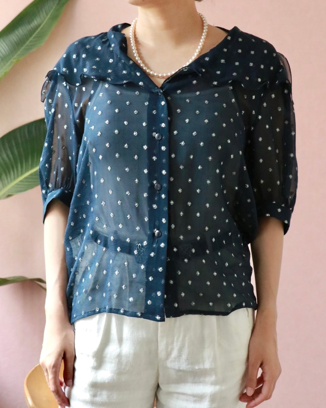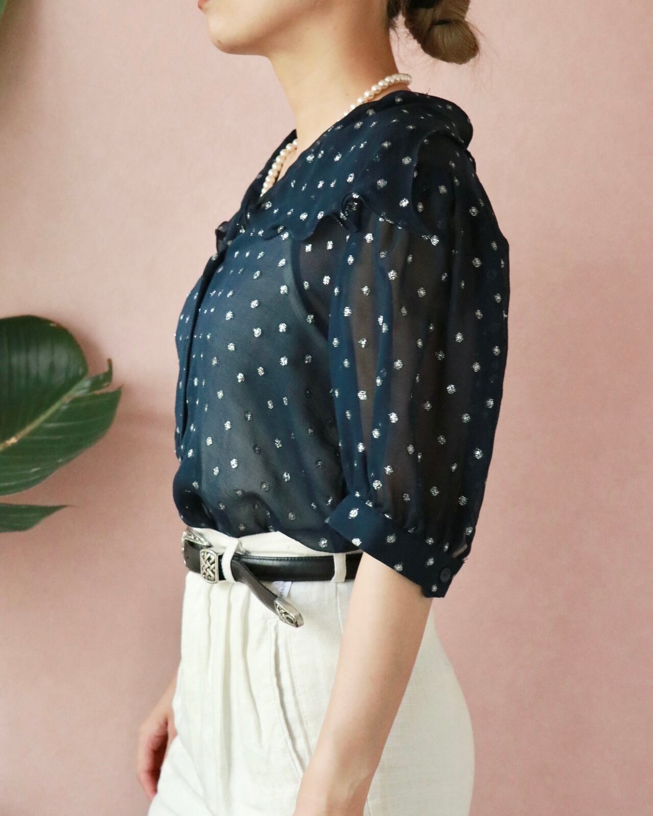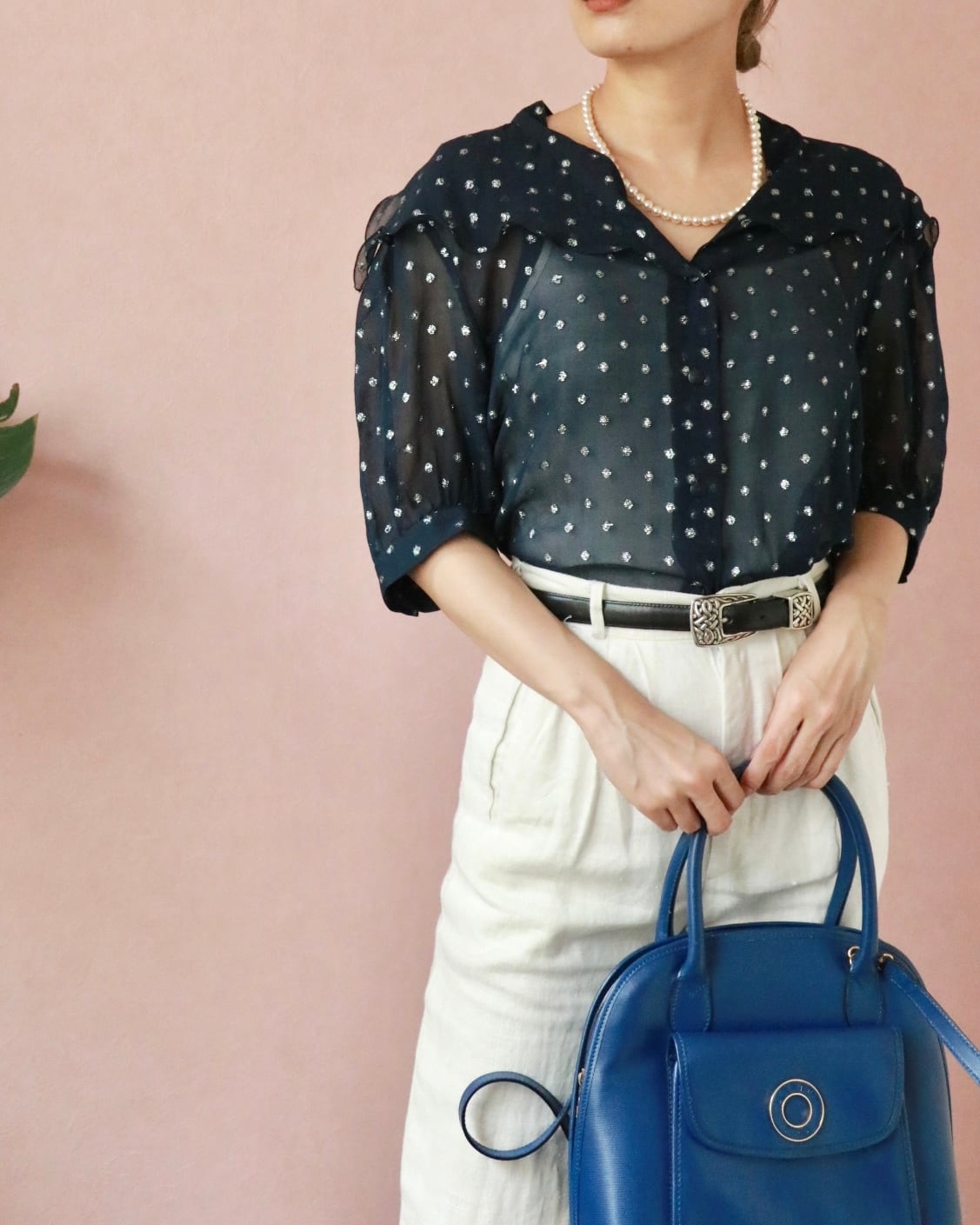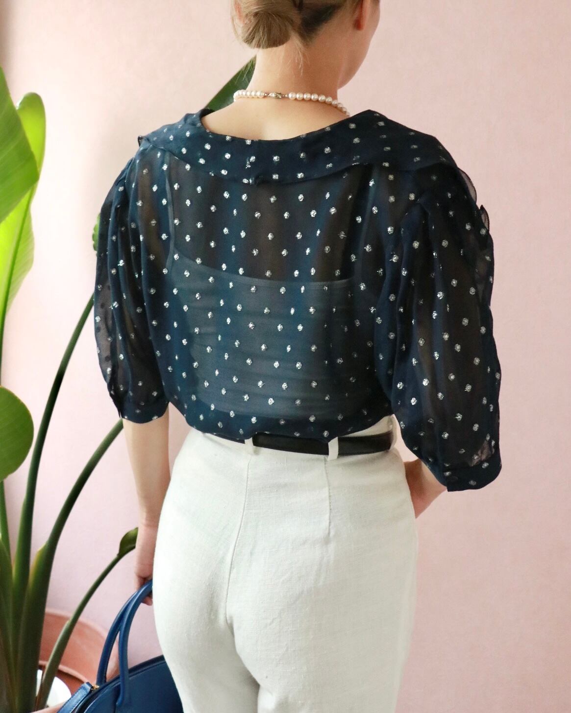 BALLYの涼しげなドット模様が浮かぶシアー素材のブラウスが入荷。夏の装いを格上げしてくれる一枚。スカラップ風の襟やふんわりとした袖がフェミニンさを引き立ててくれ、デニムとの相性も◎カジュアルにもフェミニンにも馴染む、大人の洗練された印象になれるブラウスです。
