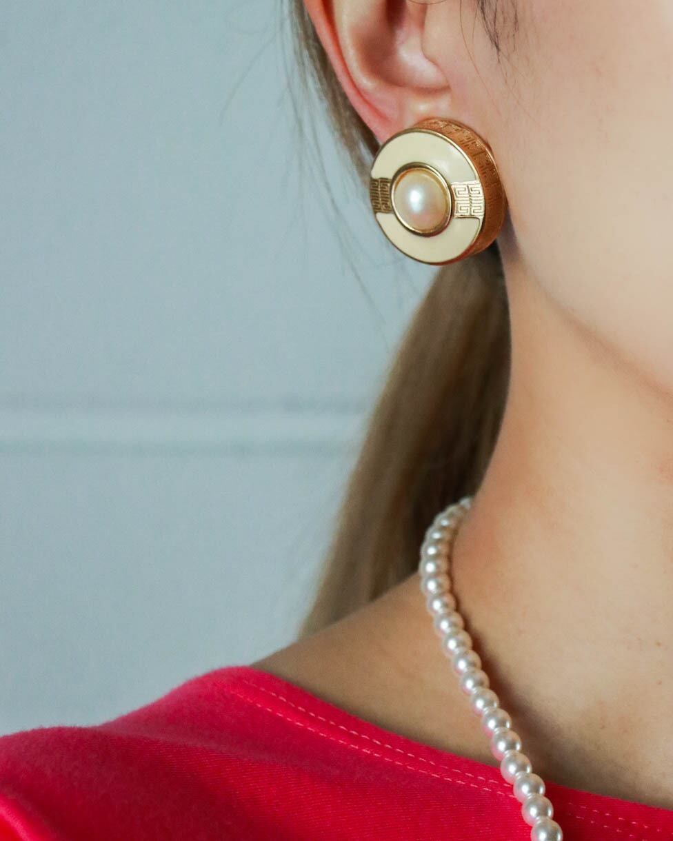 アイボリートーンのエナメルに中央のパールが上品な存在感で華やかなデザイン。