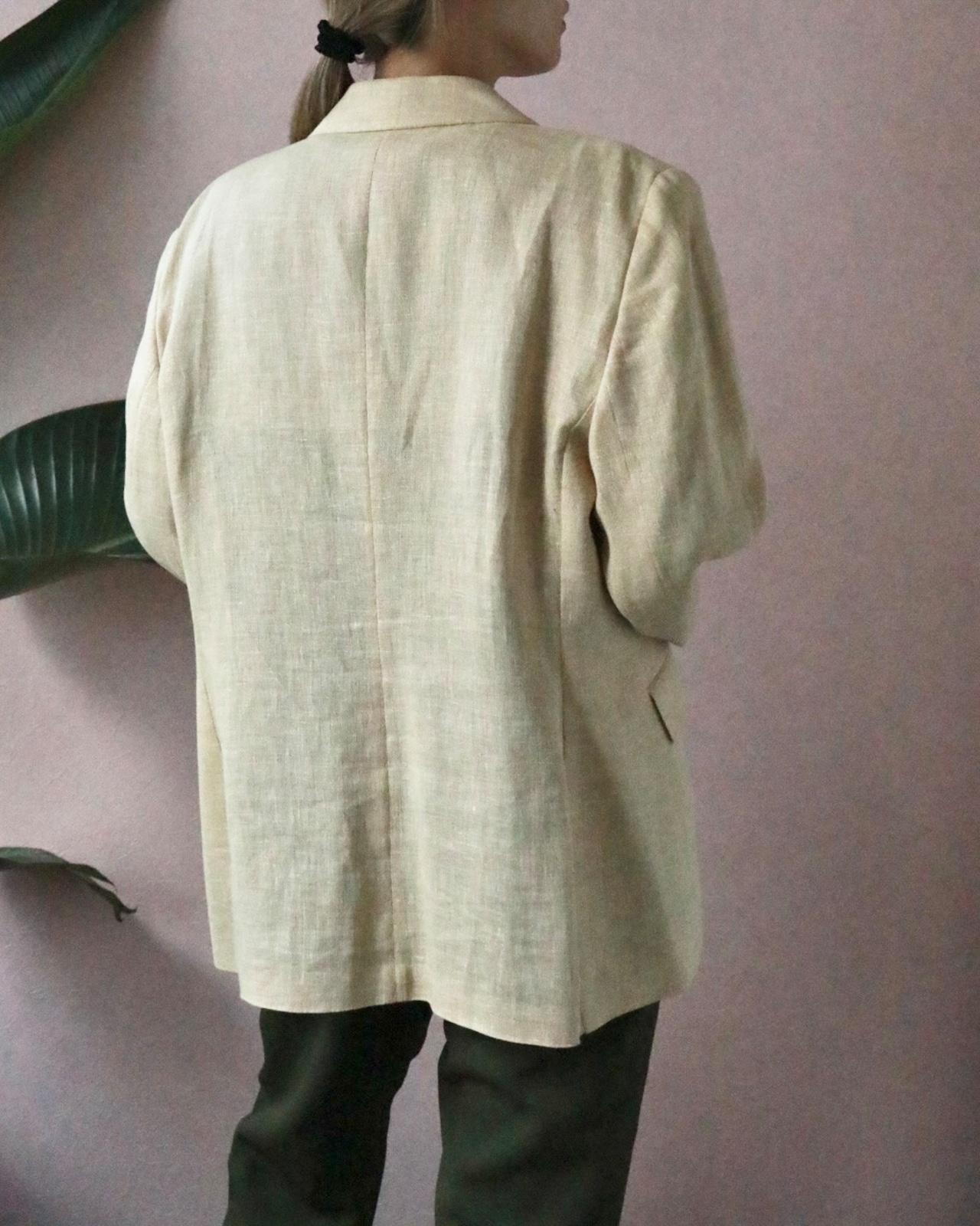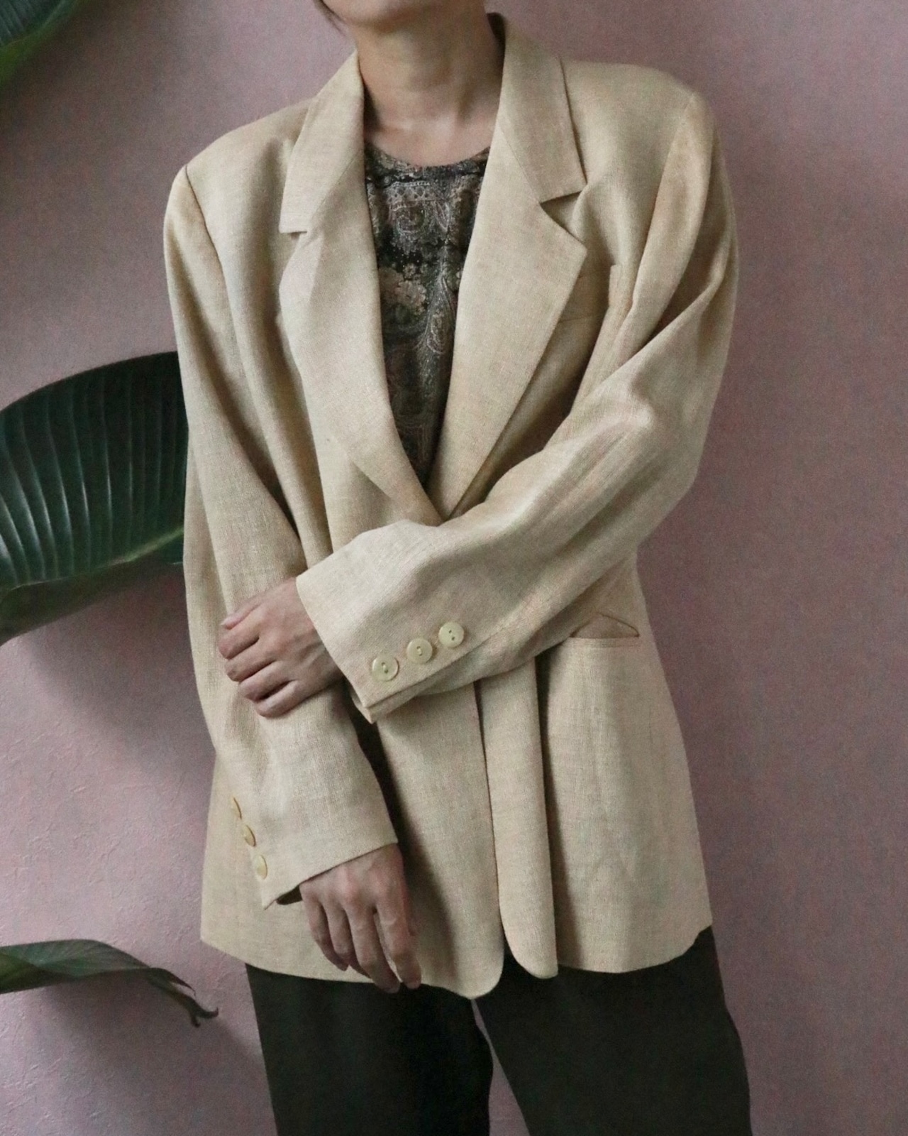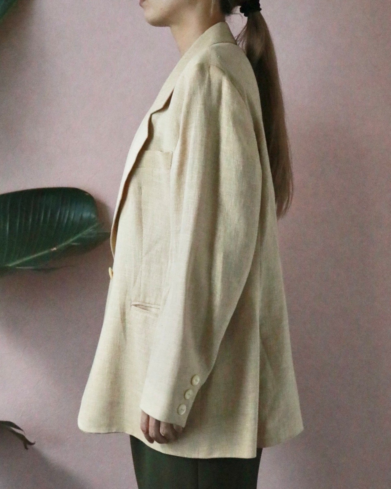 ナチュラル要素のある落ち着きのあるトーンですが、裏地もあり美シルエットで着たときに品が漂う。バケーションでも活躍します。