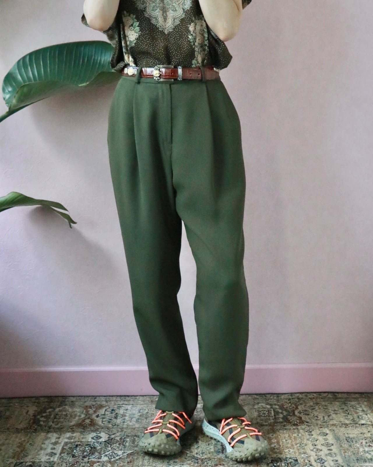 moss green tapered pants