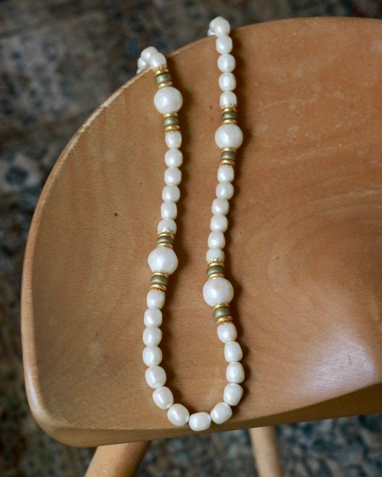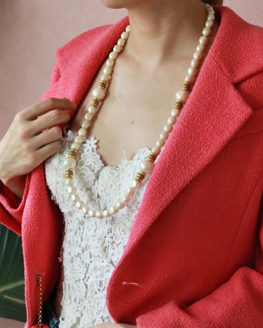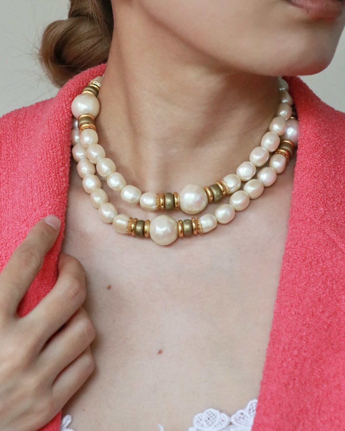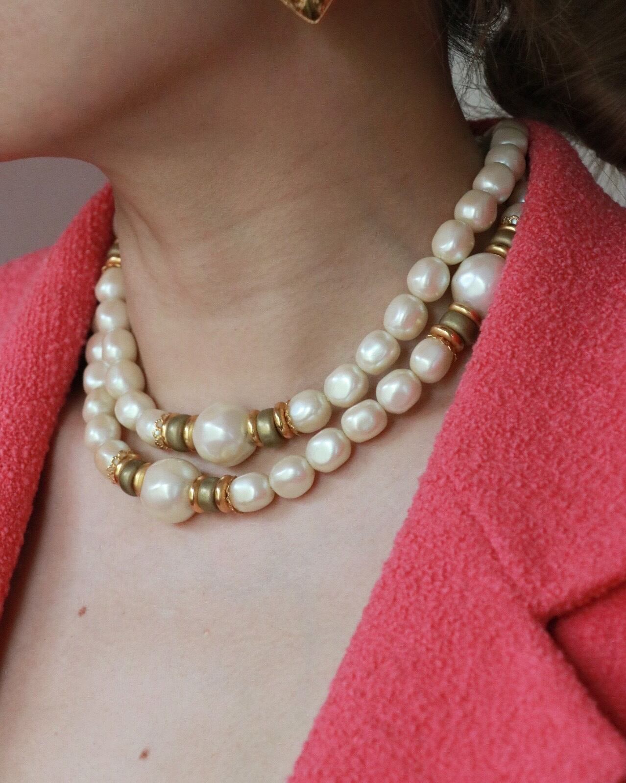 大ぶりのパールが印象的なネックレスが入荷。ロングにも二重に巻いても使用できる2wayタイプ。オケージョンにはもちろん、カジュアルなスタイリングにも合います。よく見るとパールも1つ1つ形が違って個性も輝きます。身につけるだけで気分が上がるはず。