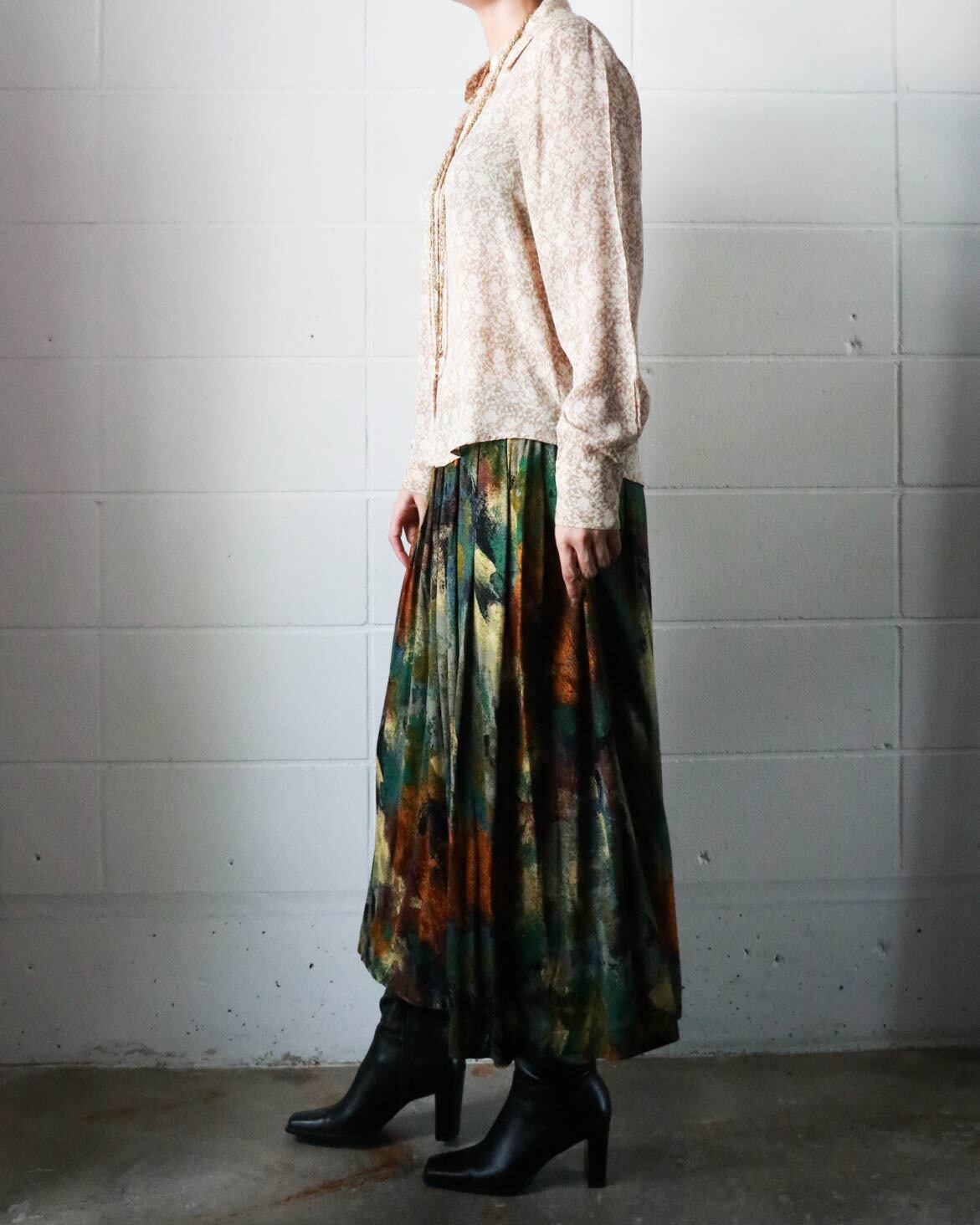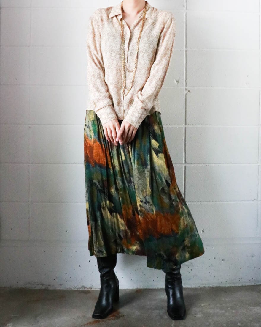 季節を感じる深みのあるカラーリングが魅力のプリーツスカート。動きに合わせて揺れるシルエットが、スタイリングにアートな表情を添えてくれます。