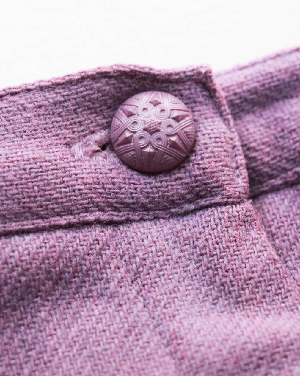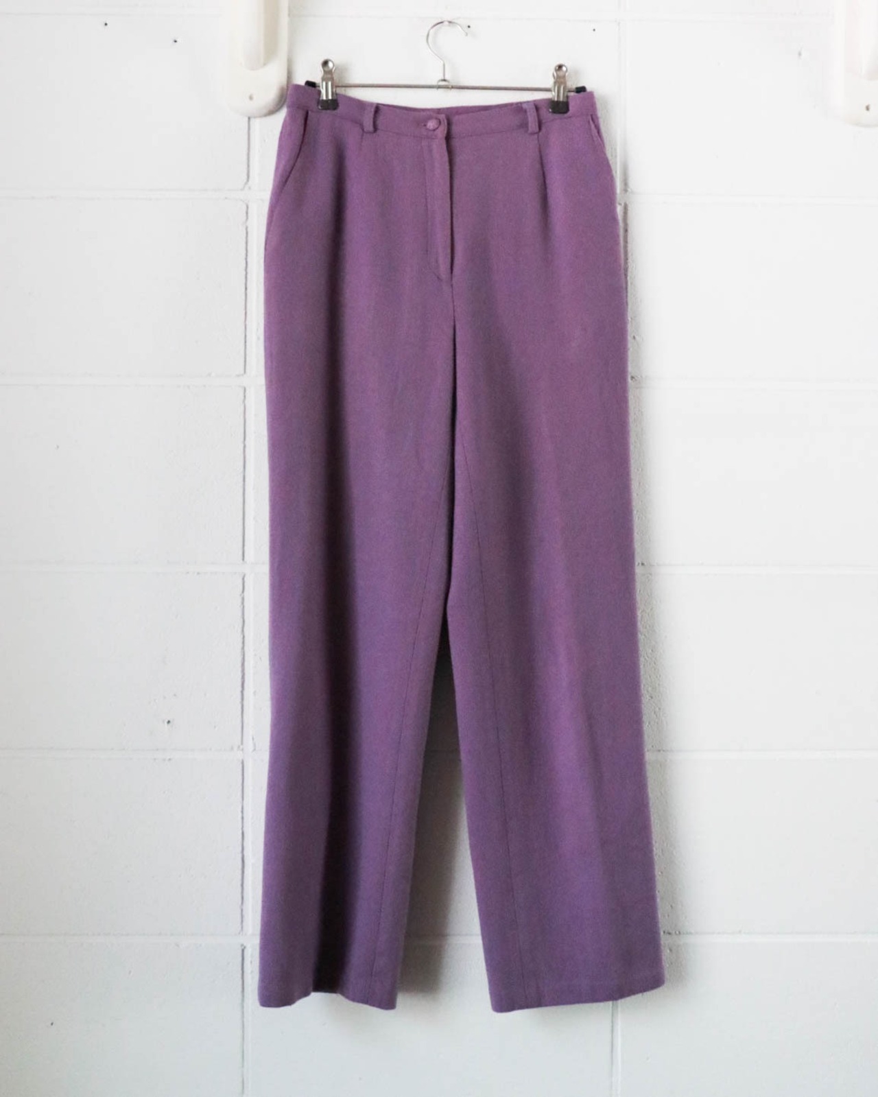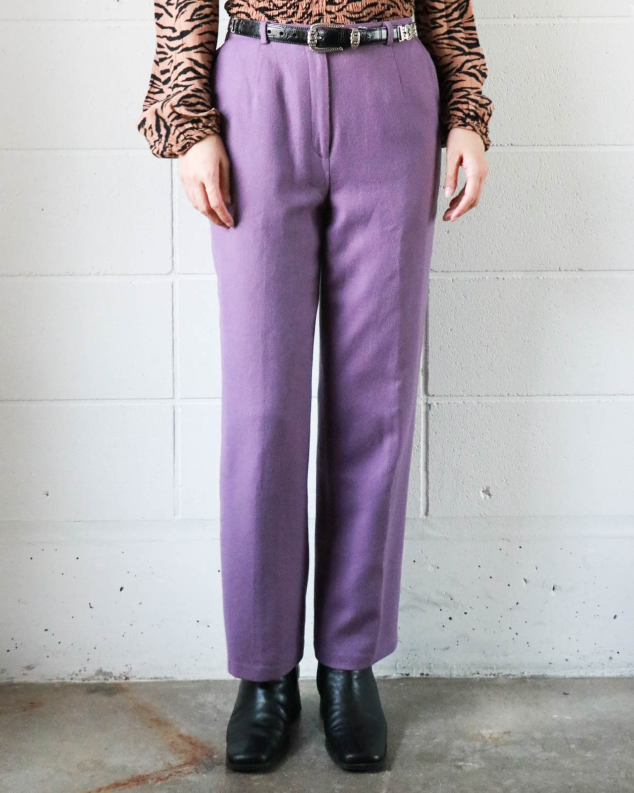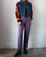 藤色のような美しさに奥行きのあるパンツは90年代のもの。ややテーパードがかかったデザイン。