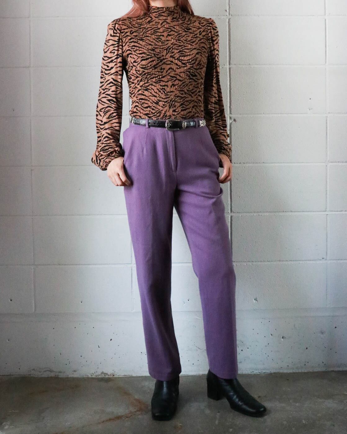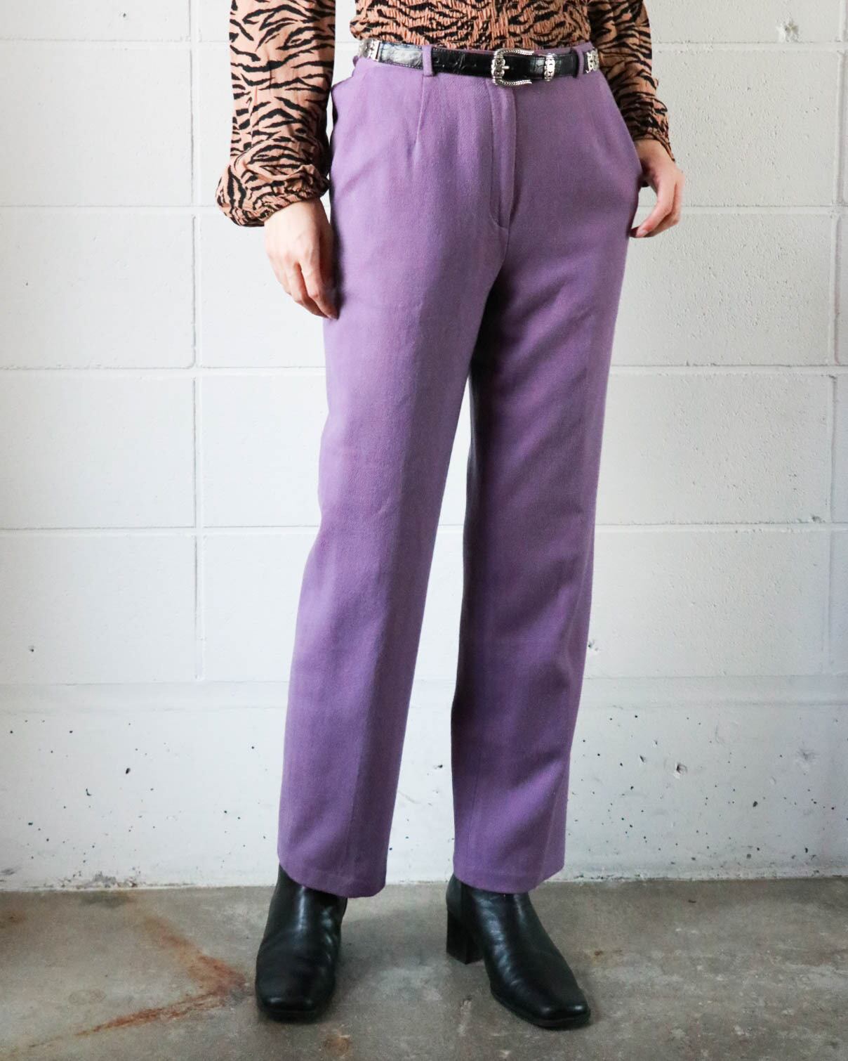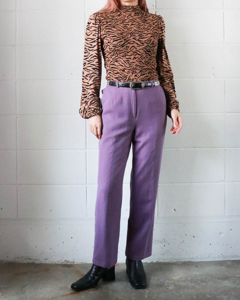 藤色のような美しさに奥行きのあるパンツは90年代のもの。ややテーパードがかかったデザイン。