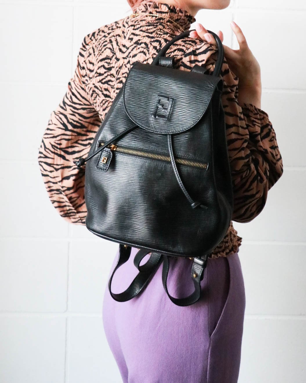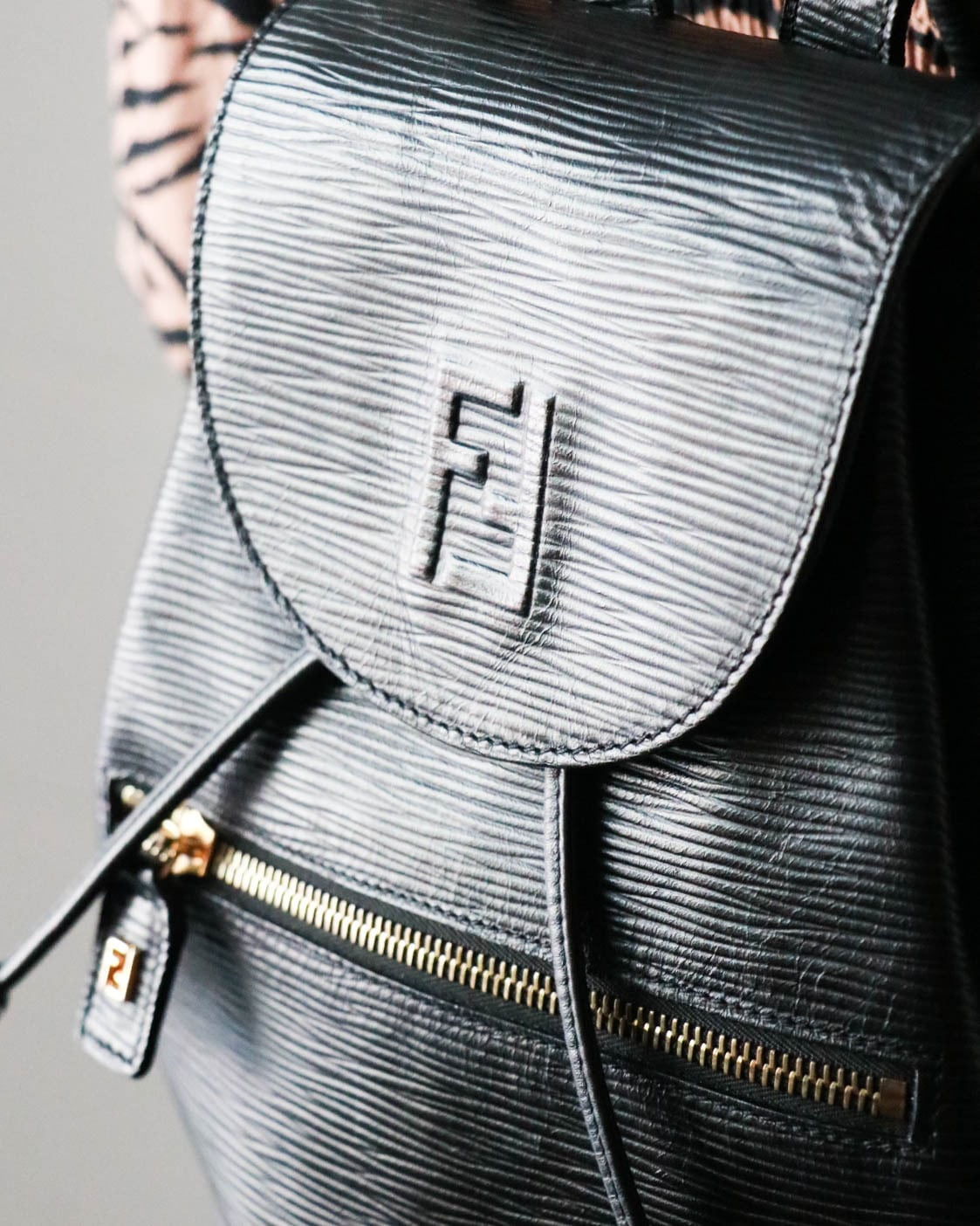 肉厚な型押しレザーが特徴的なオールドフェンディーのバックパック。ぽてっとしたフォルムにフロントのFendiロゴがキュートなアクセンに。シンプルなデザインでどんな色味とも合わせやすく、小ぶりな見た目に反し、しっかりと収納力があるのも嬉しい。使い勝手の良い実用性に富んだバッグです。