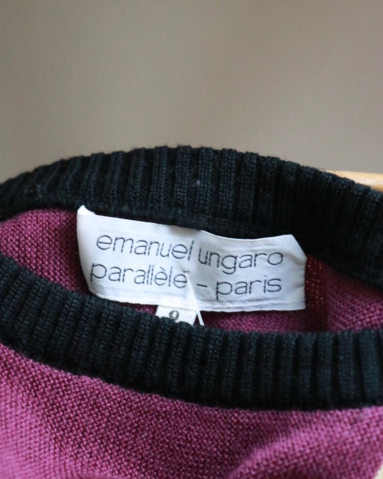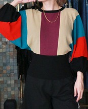 マルチカラーでふわっと柔らかな雰囲気の秋冬ニットはヴィンテージのウンガロ。ボリュームのある袖と絞られたウエストラインが女性らしいデザイン。トレンドを問わず毎年寒い時期に活躍します。