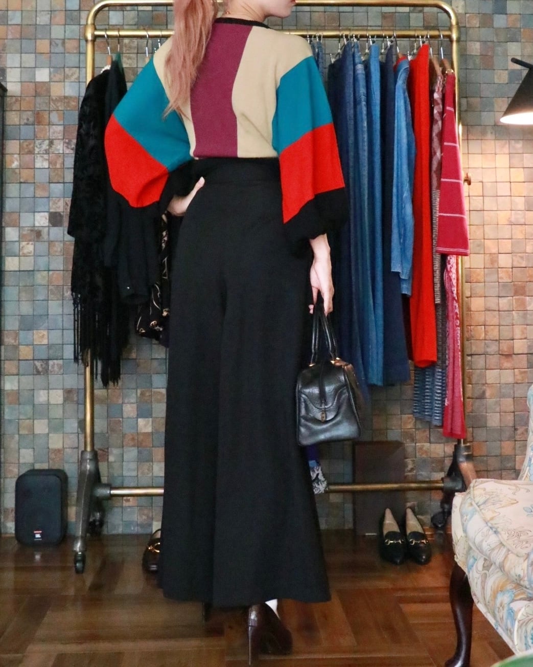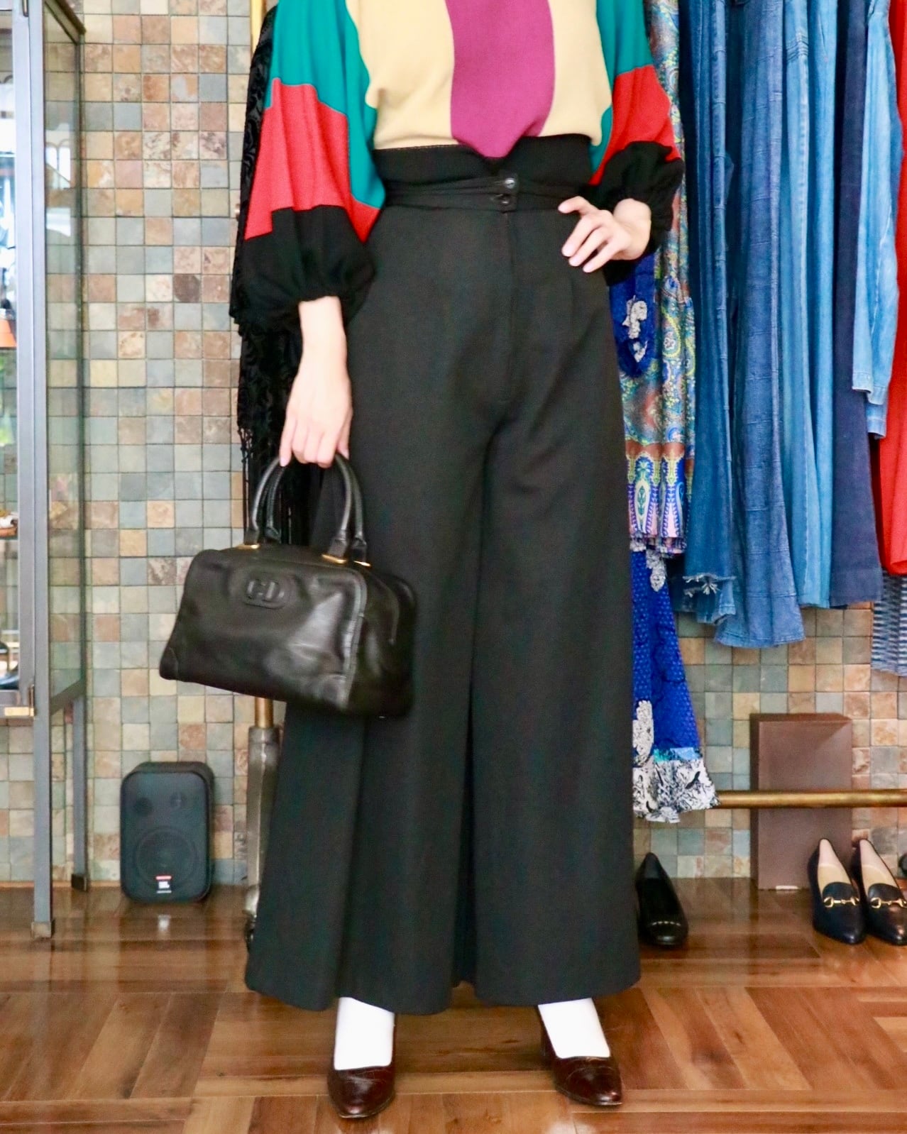 ハイウエストから裾に向かって広がるラインがとっても美しく、70'sを彷彿とさせるシルエット。どんなトップスも馴染みやすく、オールシーズン使える素材感で出番が多くなること間違いなしです。