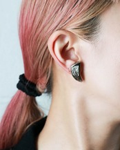 シャープなデザイン。艶とマットの二つの質感が印象的なジバンシーのシルバーイヤリング。
