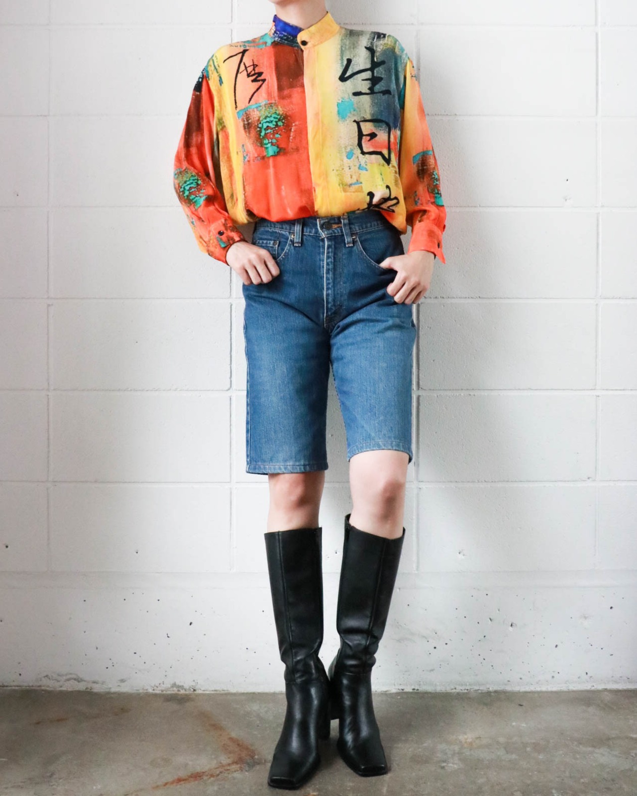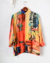柔らかで身軽な漢字モチーフのシャツ。ヴィスコースの肌触りのいい素材が肌馴染みよく、実用的な風合いを醸し出す一着。主役になるトップスをクローゼット に揃えておくとコーディネートの幅がぐっと広がります。ゆったりとしたサイズ感をいかして、フェミニンなアイテムと合わせたり、これからの季節はジャケットと合わせたコーディネートもおすすめです。