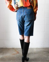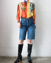 今の気分にマッチするバミューダ丈のデニム。ハイウエストなので脚をすっきり長く見せてくれ、どんなトップスとも好相性。ダークブルーの色味が、秋冬のスタイリングにピッタリの一本。ブーツと合わせて大人スタイルも楽しめる万能アイテム。
