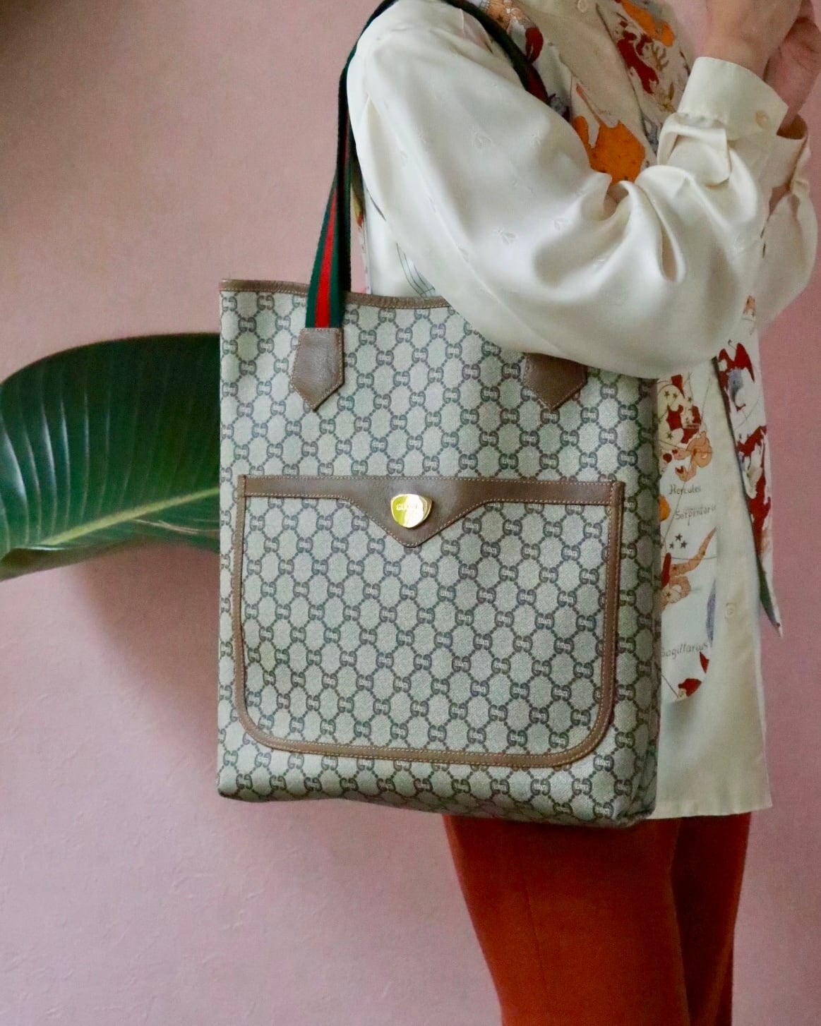 現在は存在しないグッチplusのバッグが入荷。トートバッグならではの収納力も嬉しい。