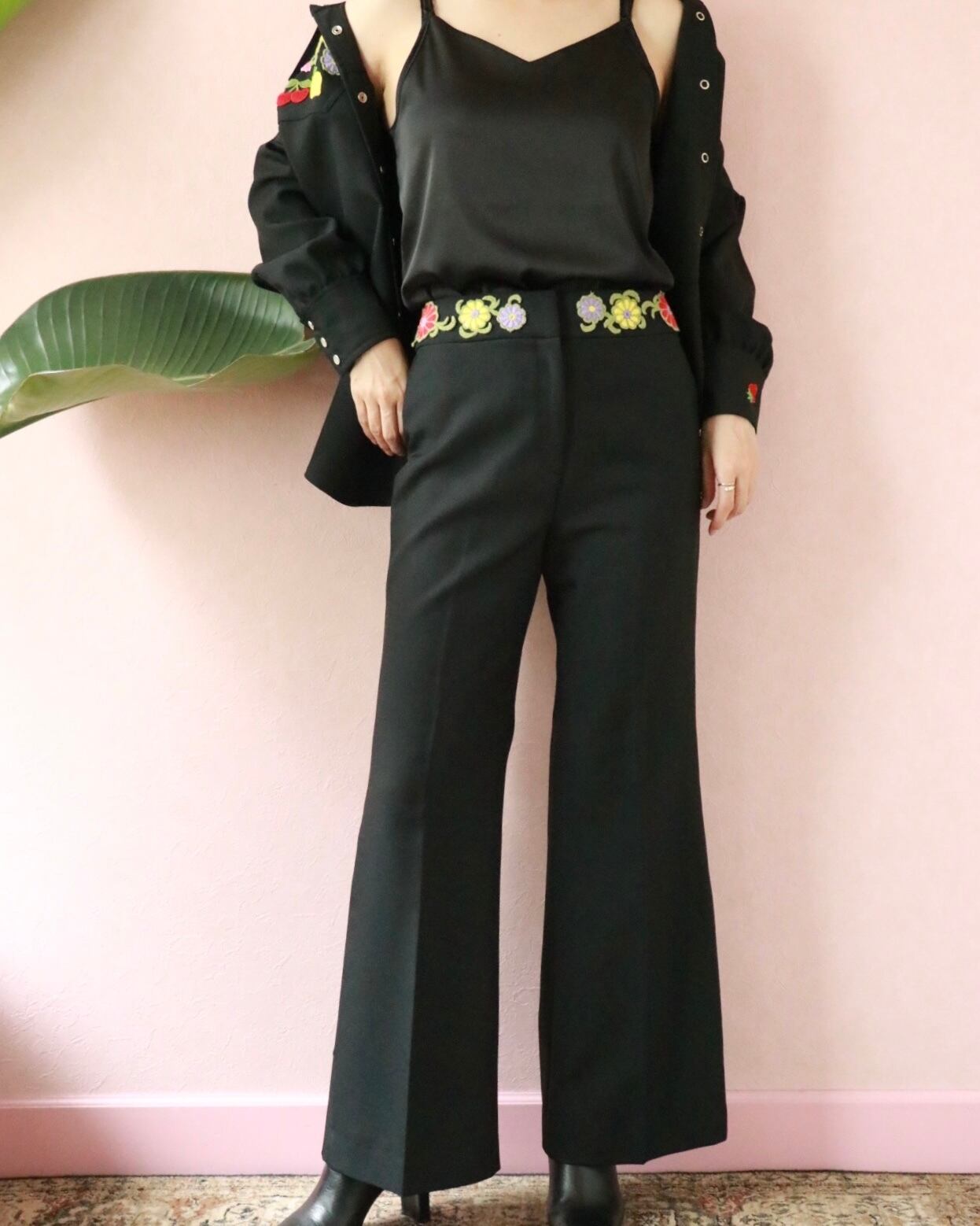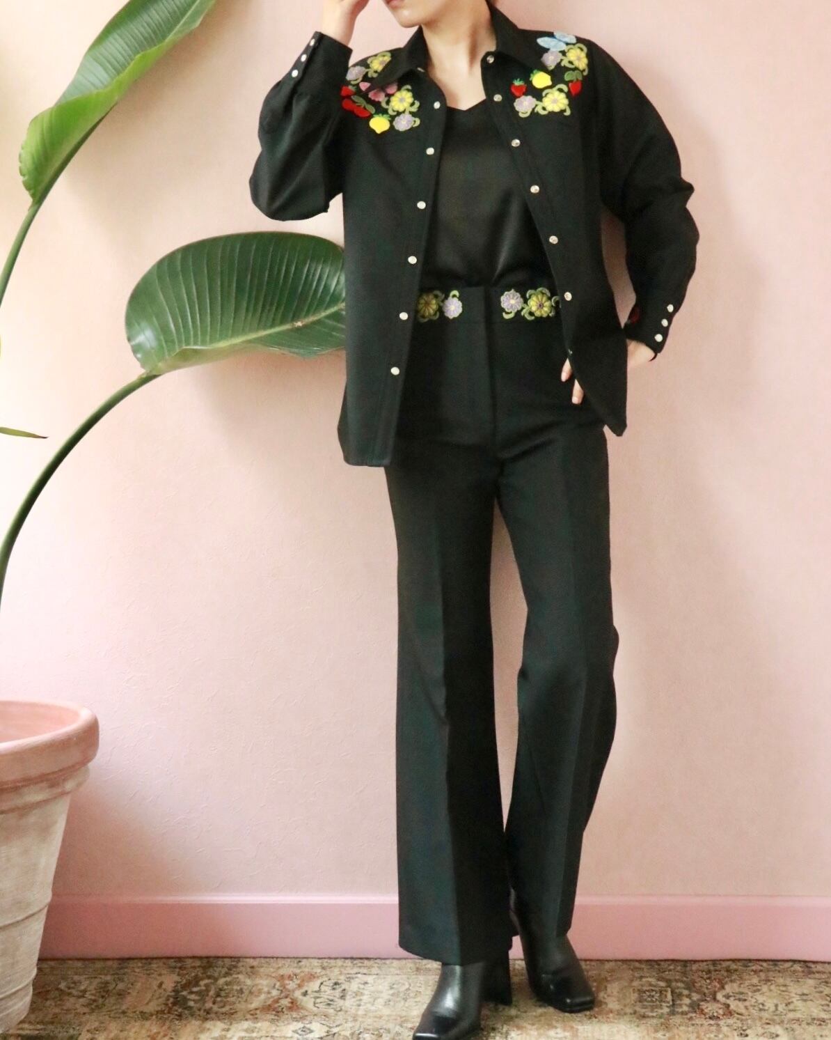 ウエスト部分の刺繍が特徴的な70sのパンツ。
