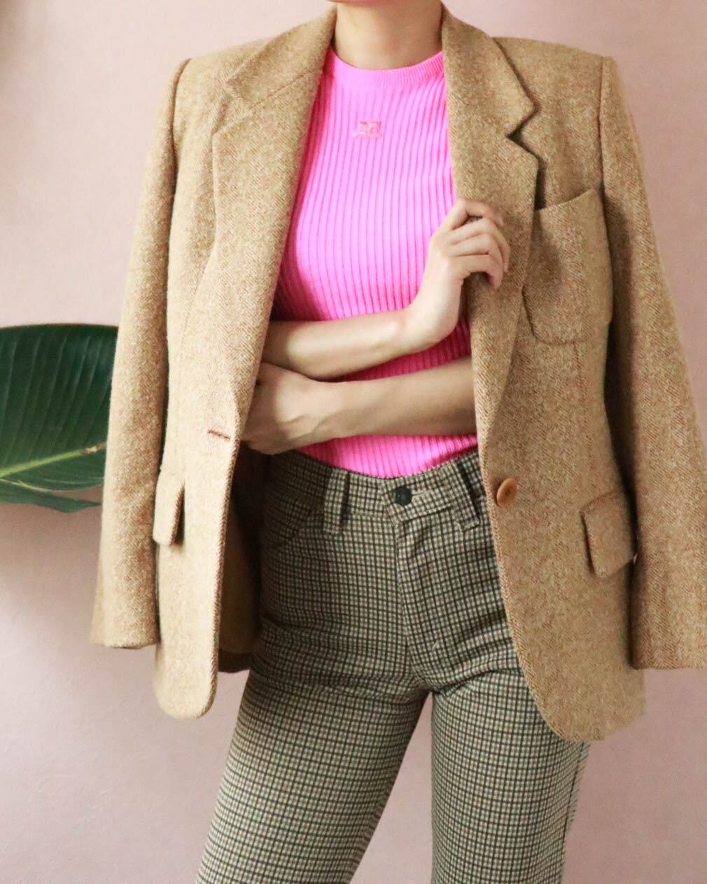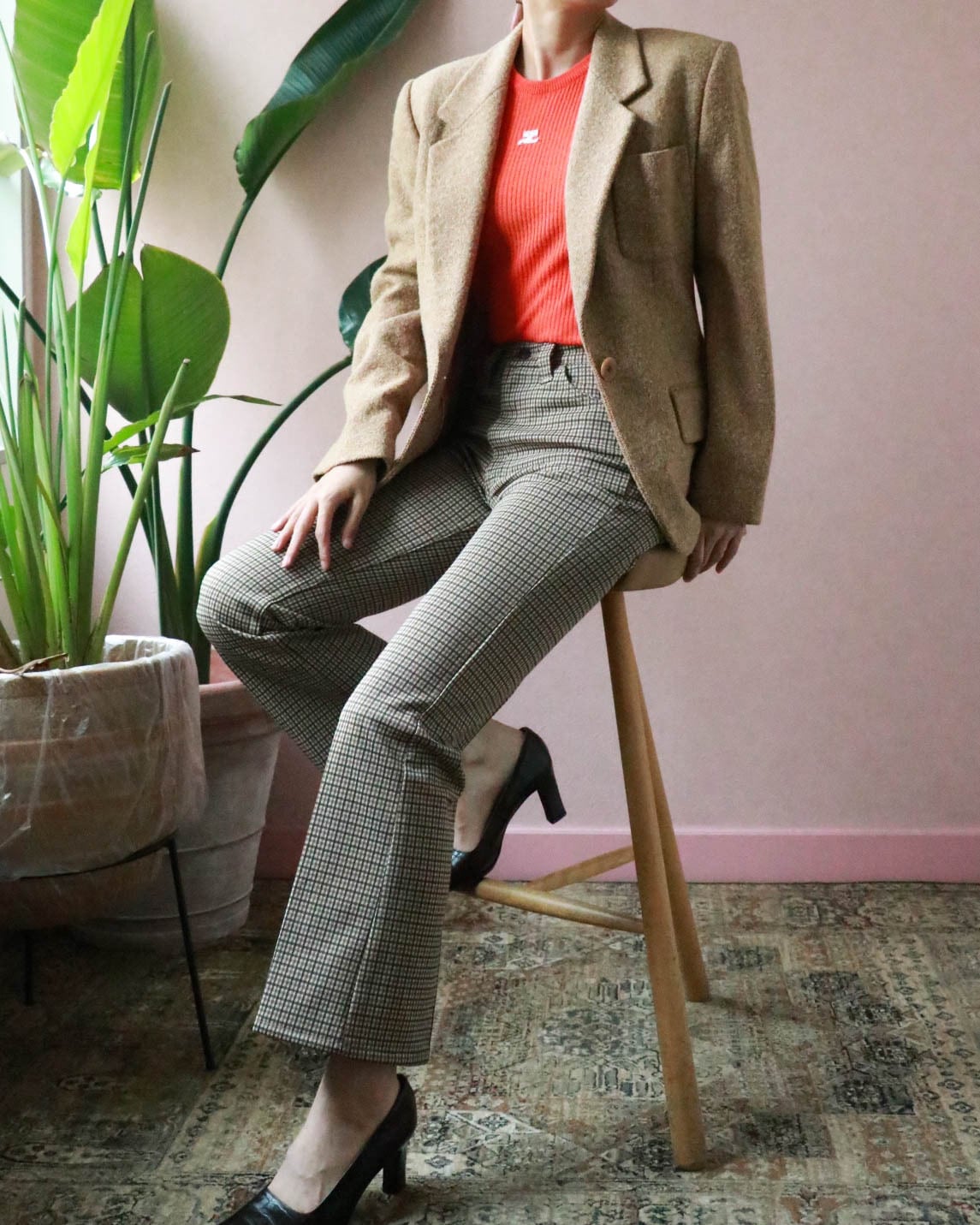 フロントから見るとかっちりとしていますがバックスタイルはセリーヌならではの程よくウエストラインを魅せるフェミニンな美ラインが特徴的。