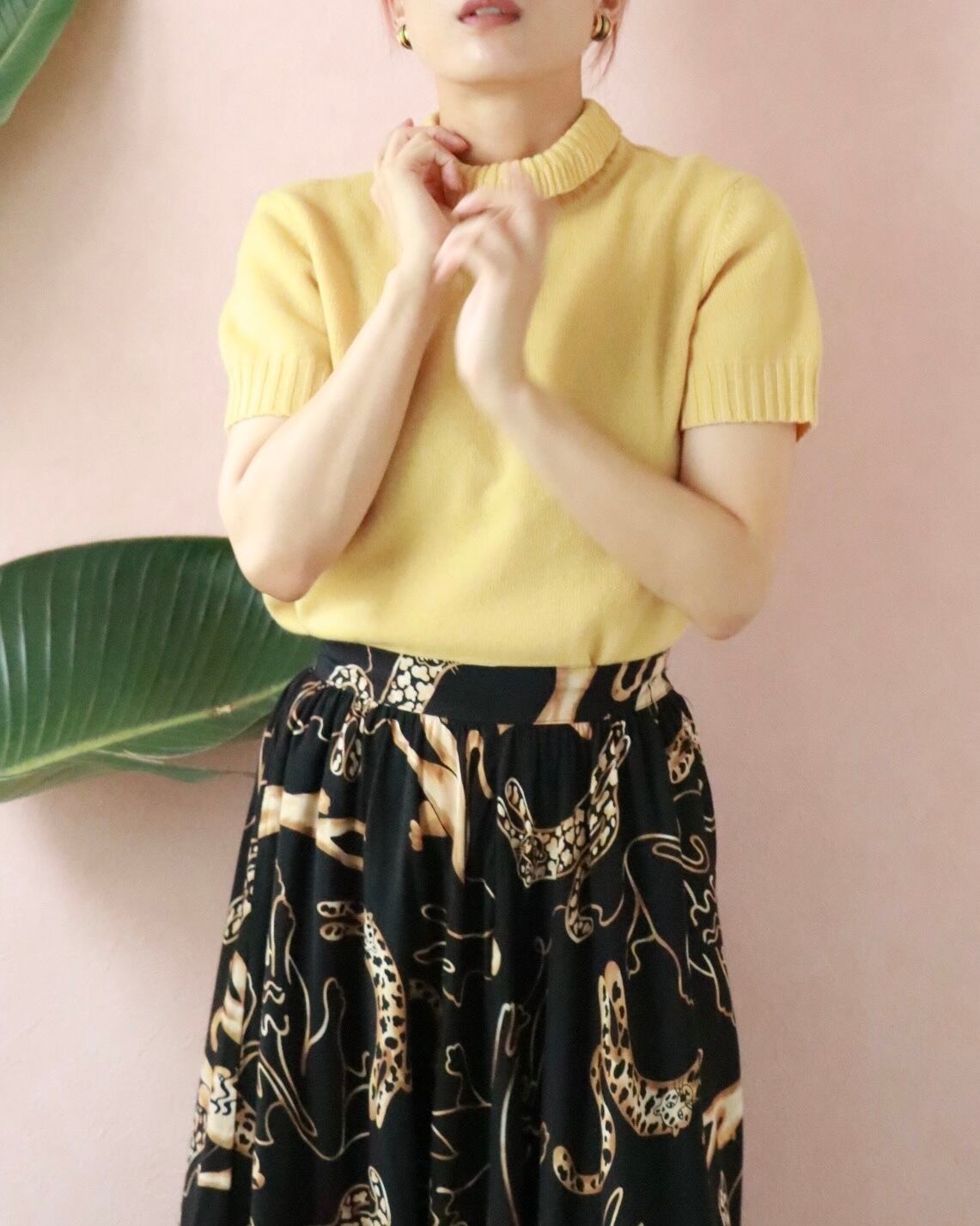 花びらのようなデザインのハイネック、ソフトなパフスリーブがとってもキュートな一枚。優しいイエローカラーが好印象で、暗くなりがちな肌寒い季節のコーディネートがパッと華やかになります。柔らかな肌触りで軽量なのに、優れた保温性を備えたニットはトレンドを問わずずっと愛用します。シンプルなニットこそ上質なものをチョイスして、大人女性の着こなしを楽しみください。