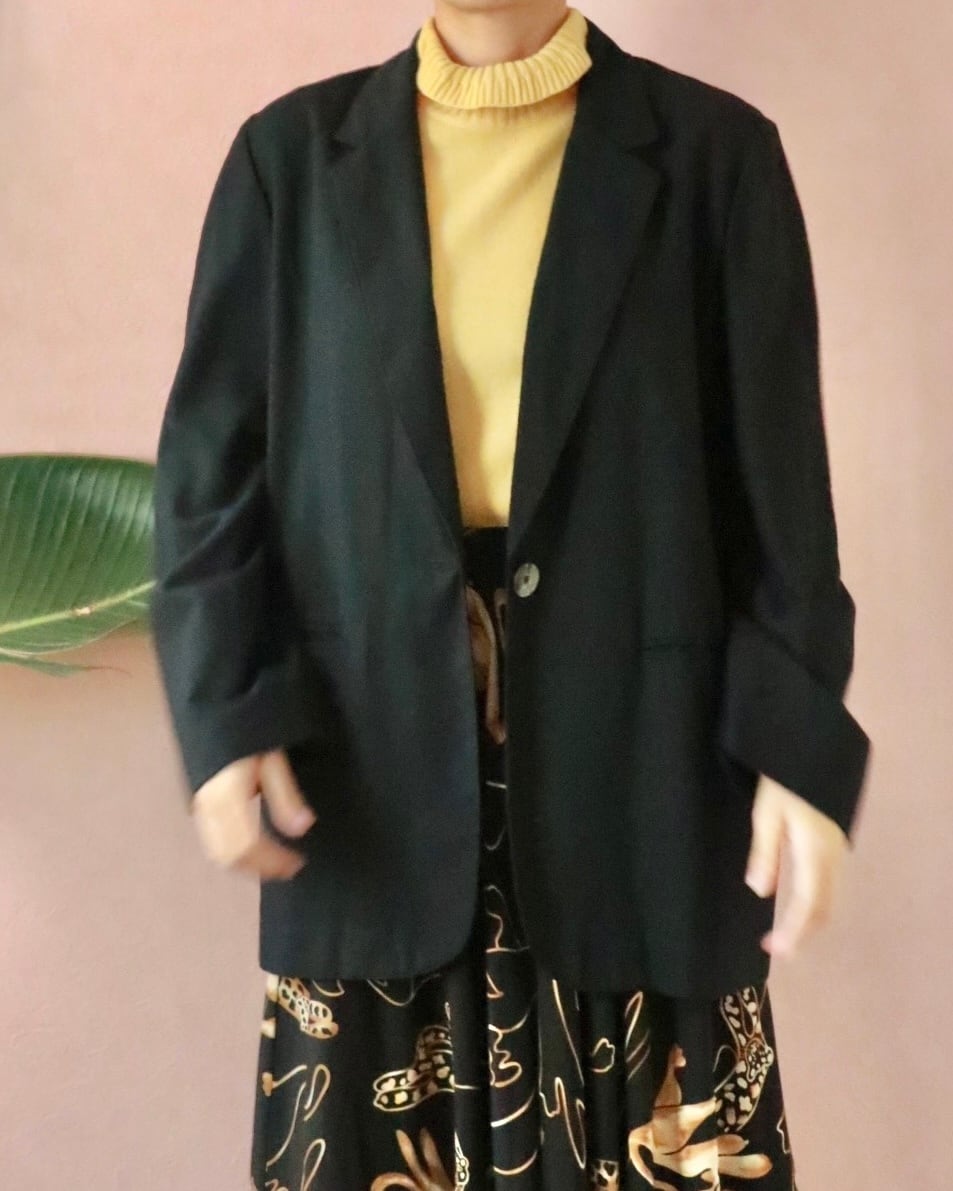 艶のある大きめの1つボタンは開けても閉めてもデザインに響かず、デイリーにちょっとしたお出かけにと今時期に大活躍する一着です。