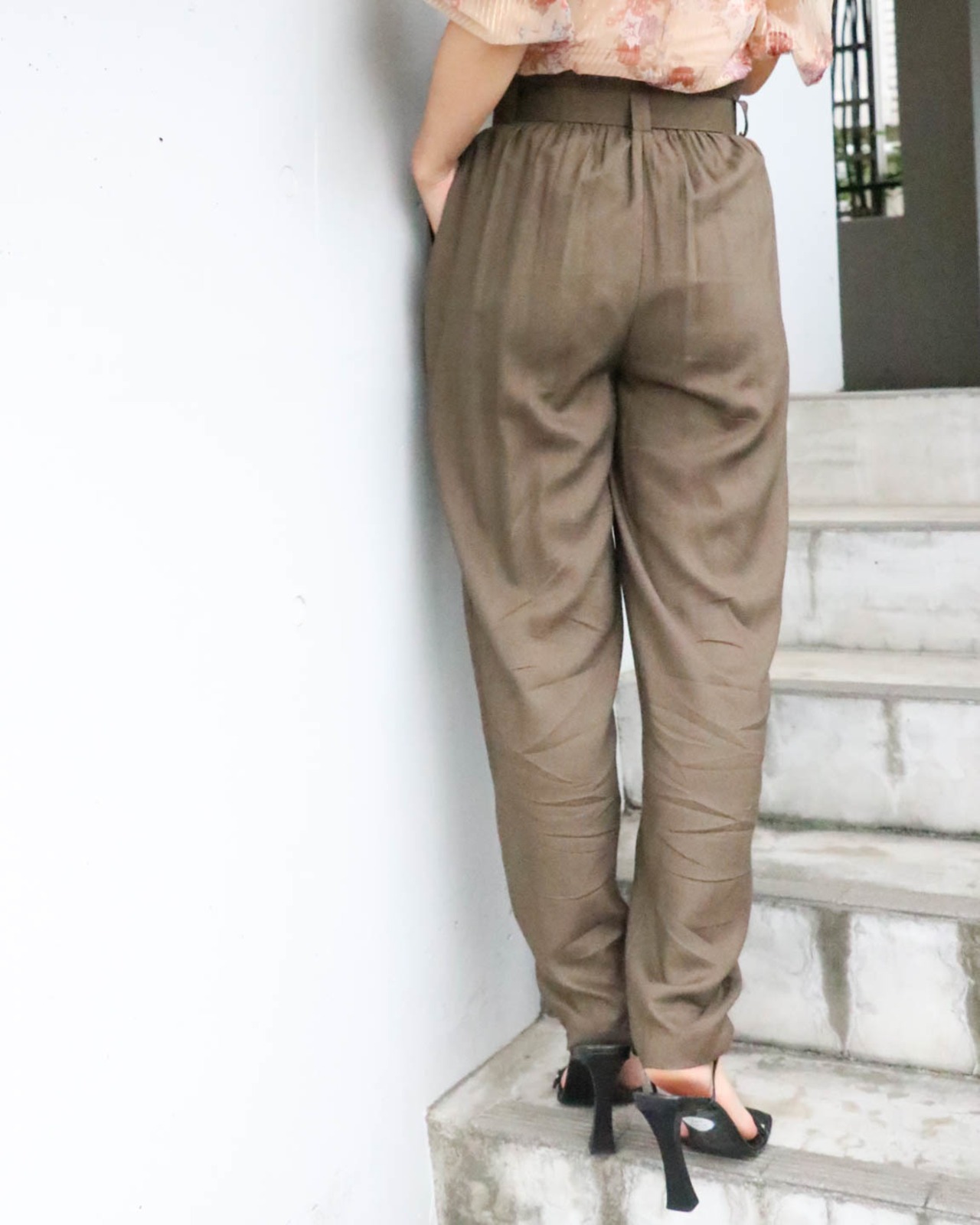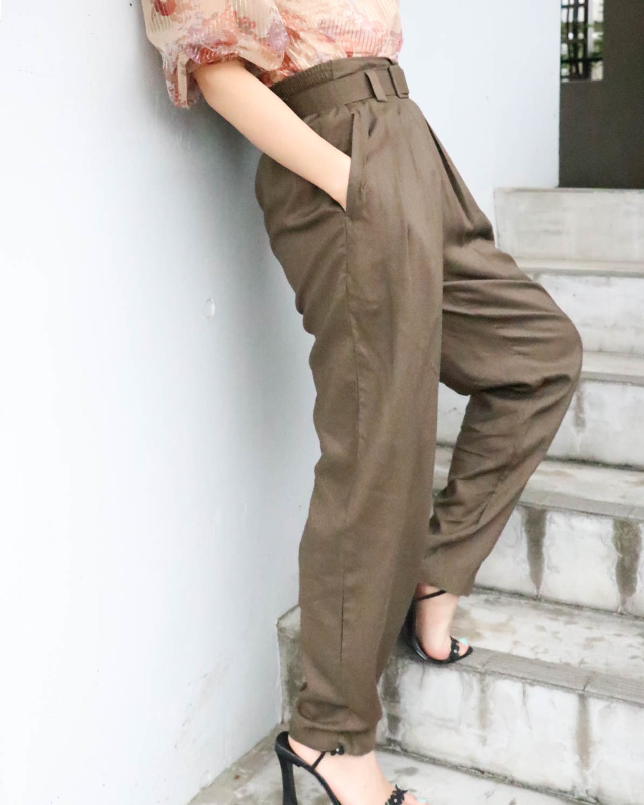 rayon pegtop pants with belt