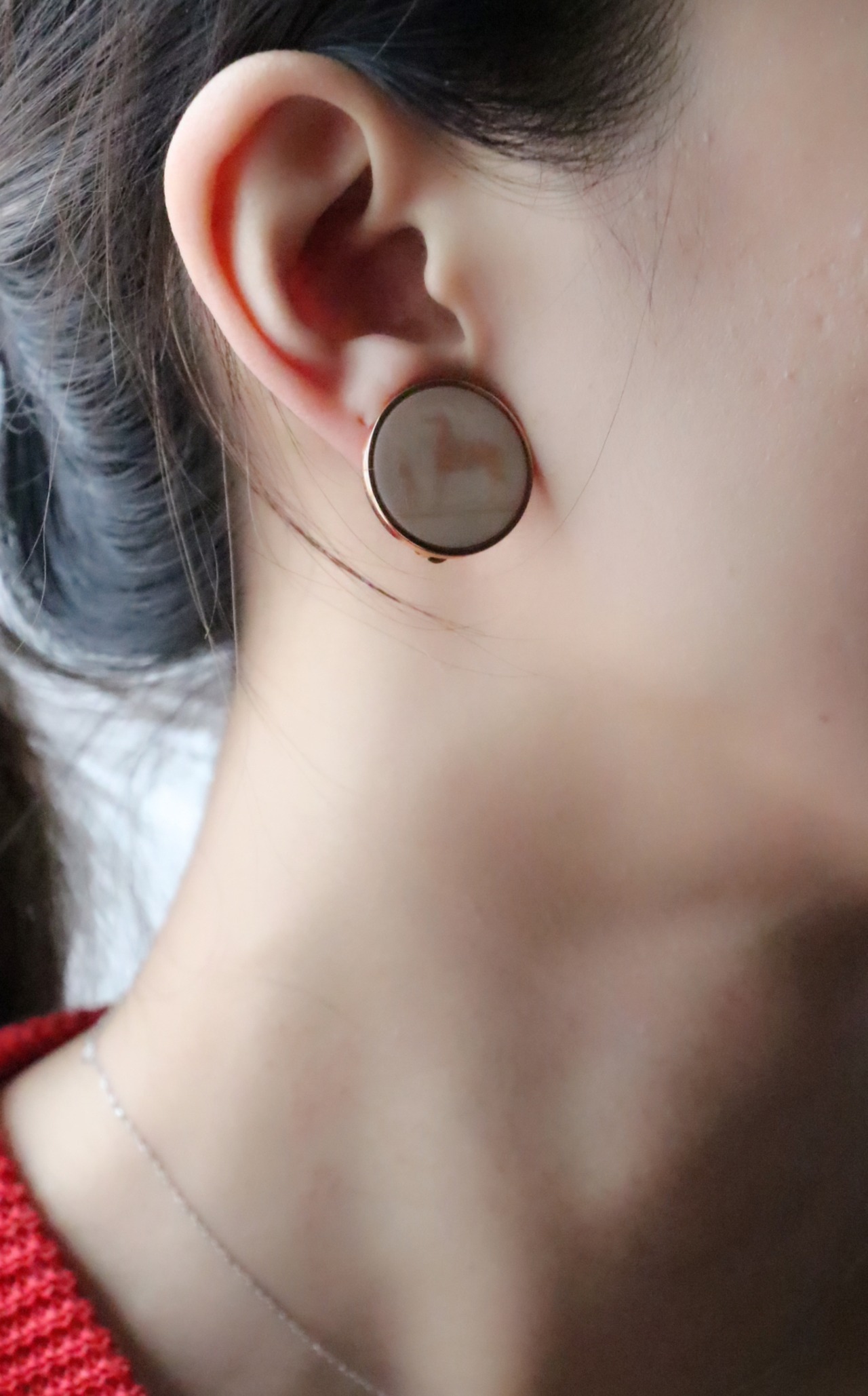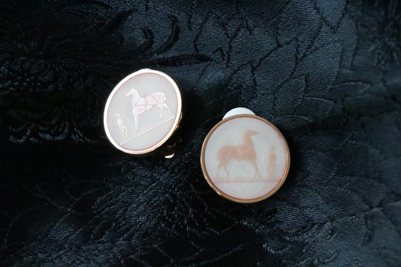 それに施された馬の絵柄が上品なフラットタイプのイヤリング