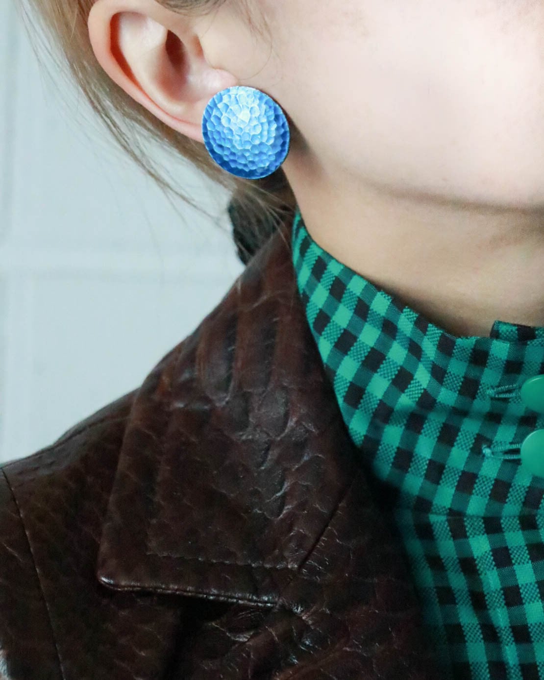 dead stock blue circle earrings