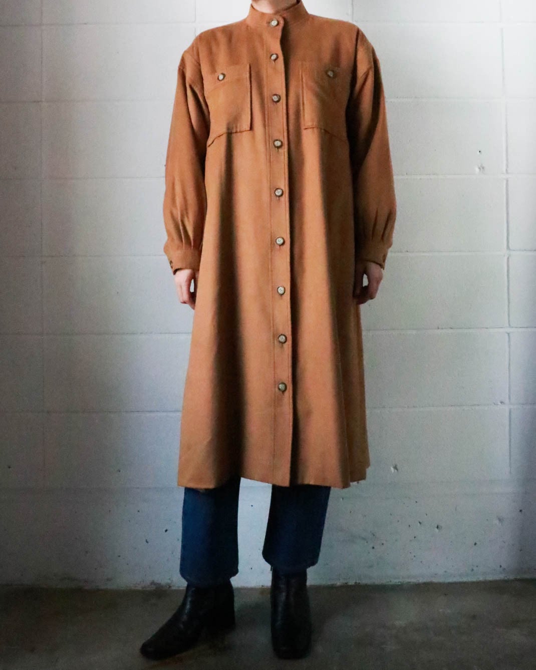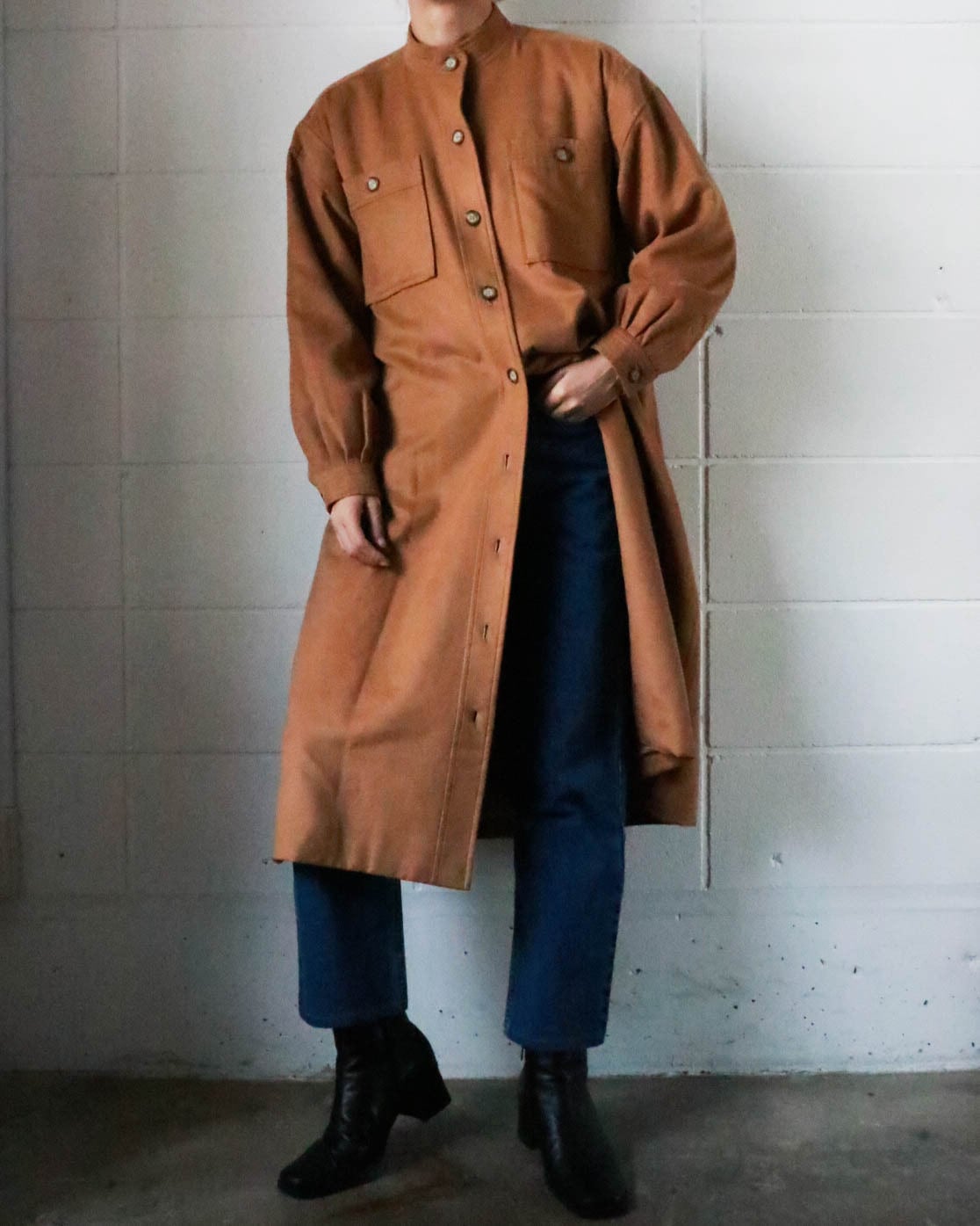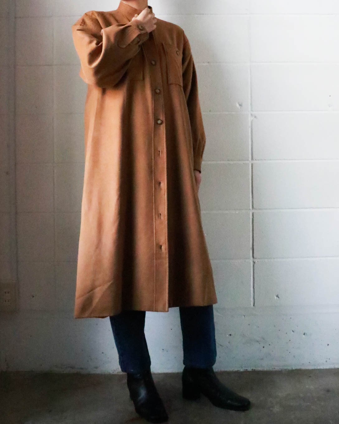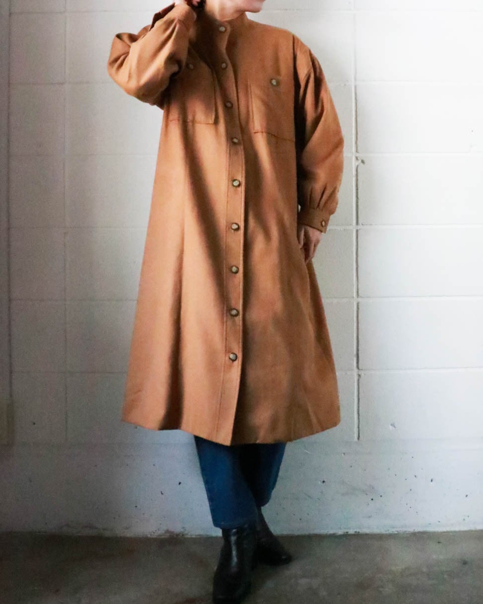 深みのあるブラウンカラーが一気に秋めく雰囲気に。スタンドカラーでYSLの洗練された美しさだけでなく、軽やかな着心地で幅広いスタイリングにもマッチする。ワンピーススタイルでもライトアウターとしても◎秋のヴィンテージスタイルを楽しんで。