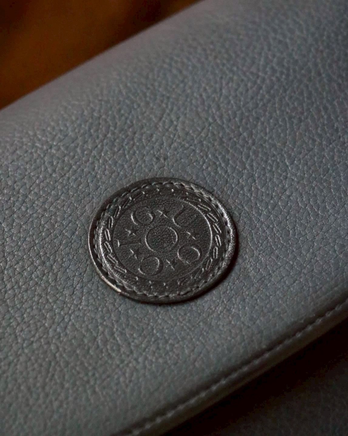 フロントの型押しロゴに加えてゴールド金具も控えめなミニマルで洗練された上品な一点。