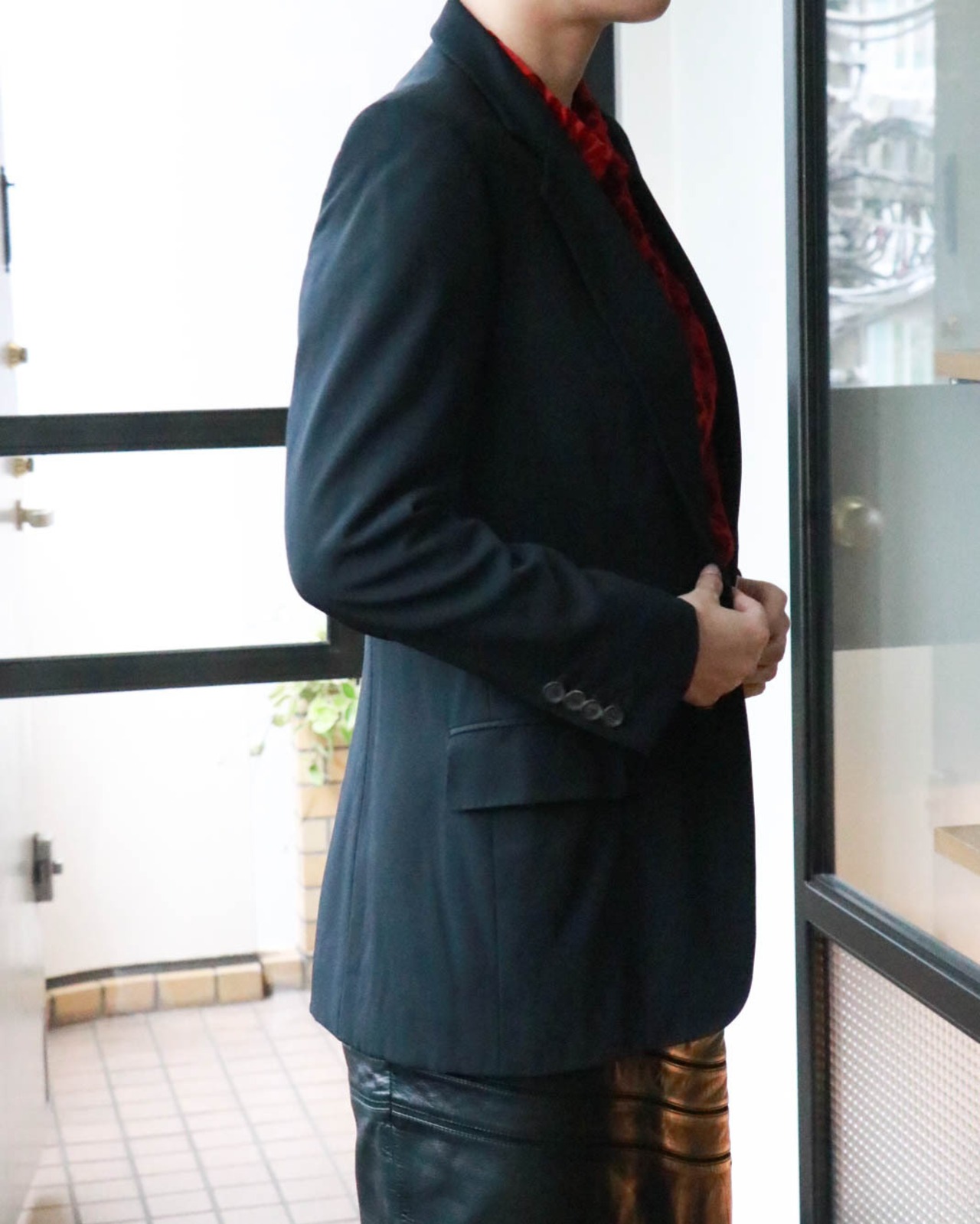 上質なウール素材を使用した、軽やかな着心地のテーラードジャケット。オーバーすぎない程よい王道シルエット。今時期の季節の変わり目からワードローブに加えたい一着です。