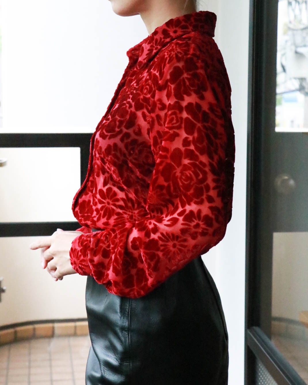 どんなコーディネートでもムードを盛り上げてくれるベロアシャツ。こちらは全体的にシースルーでお花模様のカットワークのベロア素材が特徴的な一枚。動きのあるデザインはさっと羽織るだけで女性らしさがアップデートします。シンプルなボトムズに合わせて、トップスを主役にしたコーデをお楽しみください◎