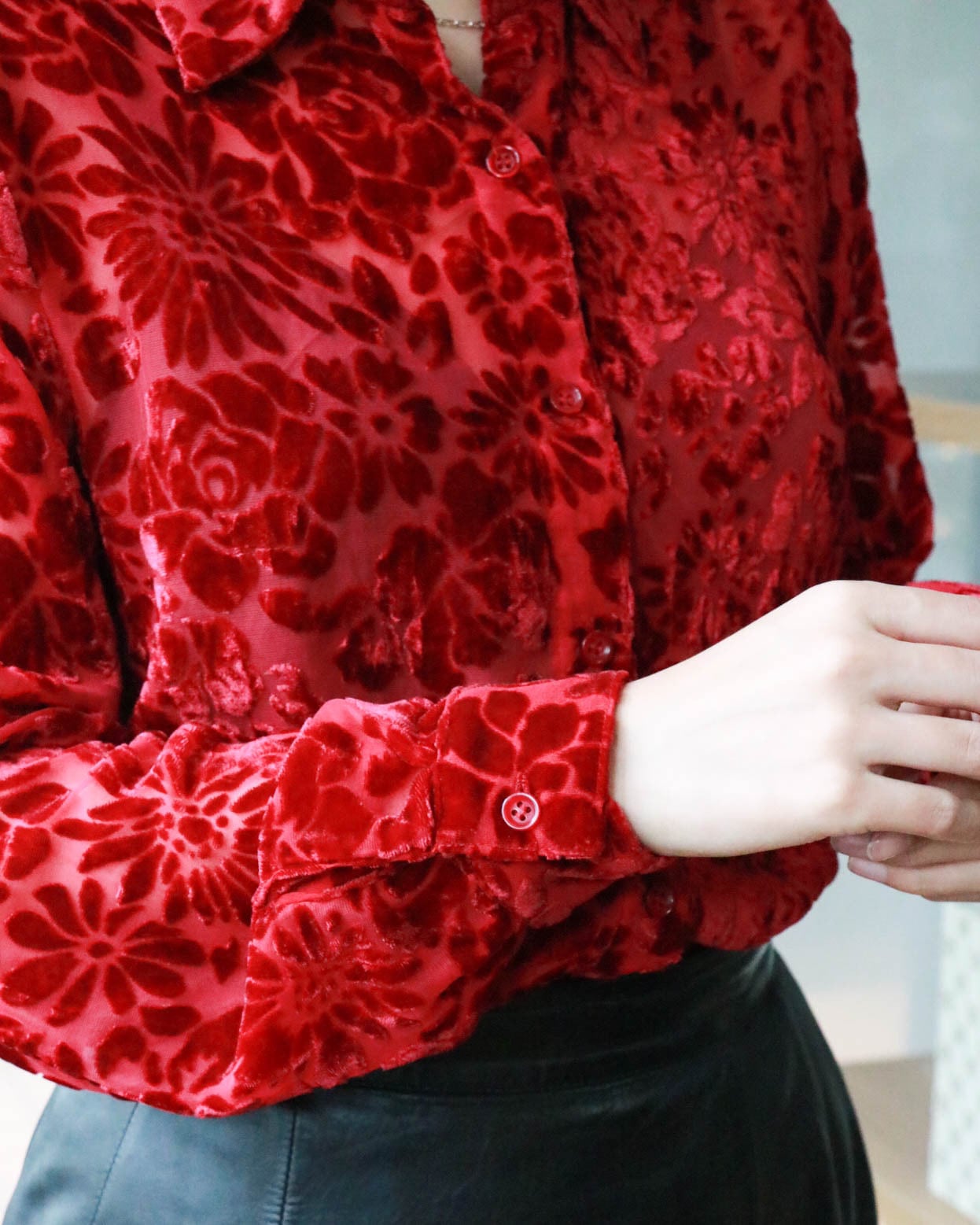 burgundy velour shirt