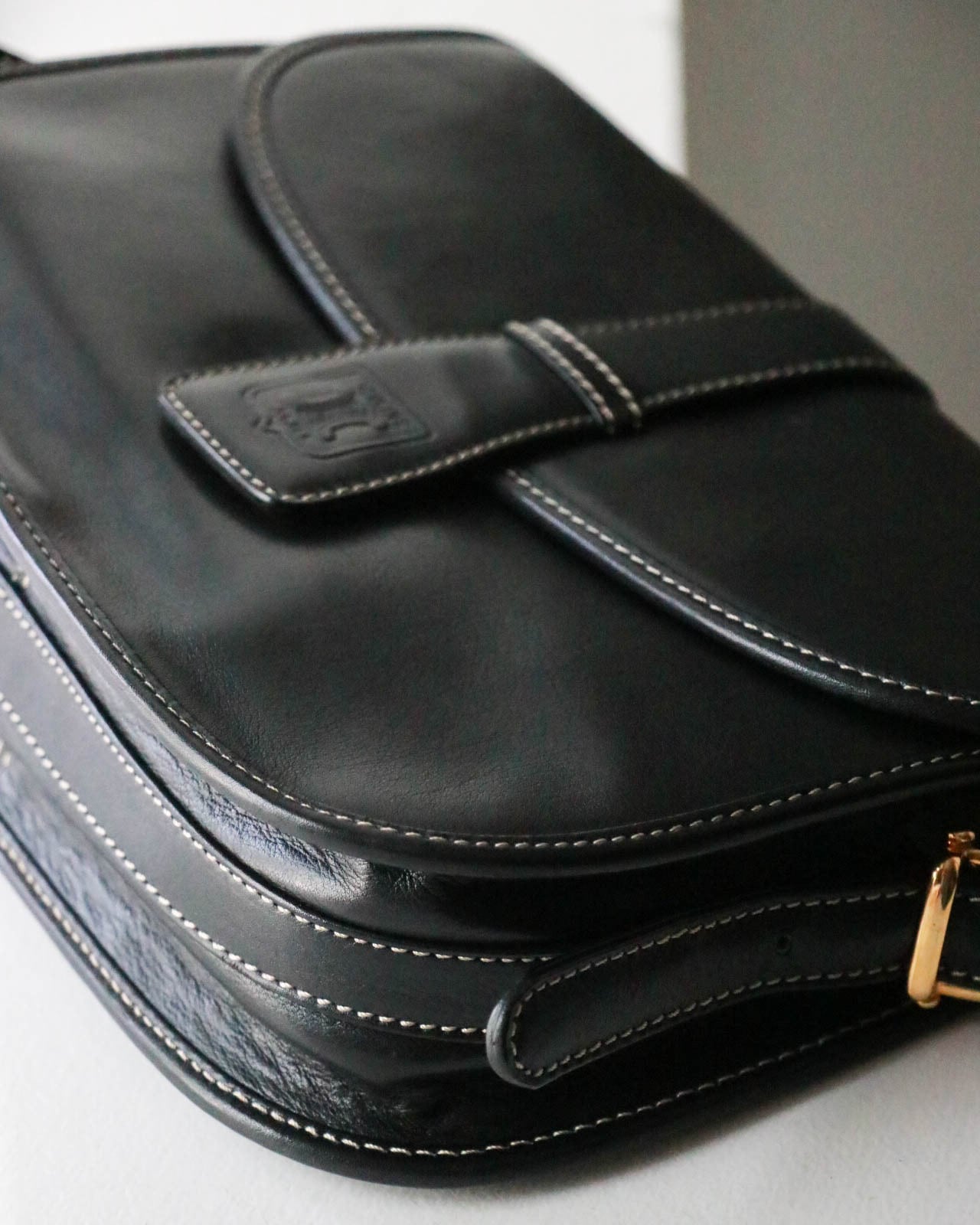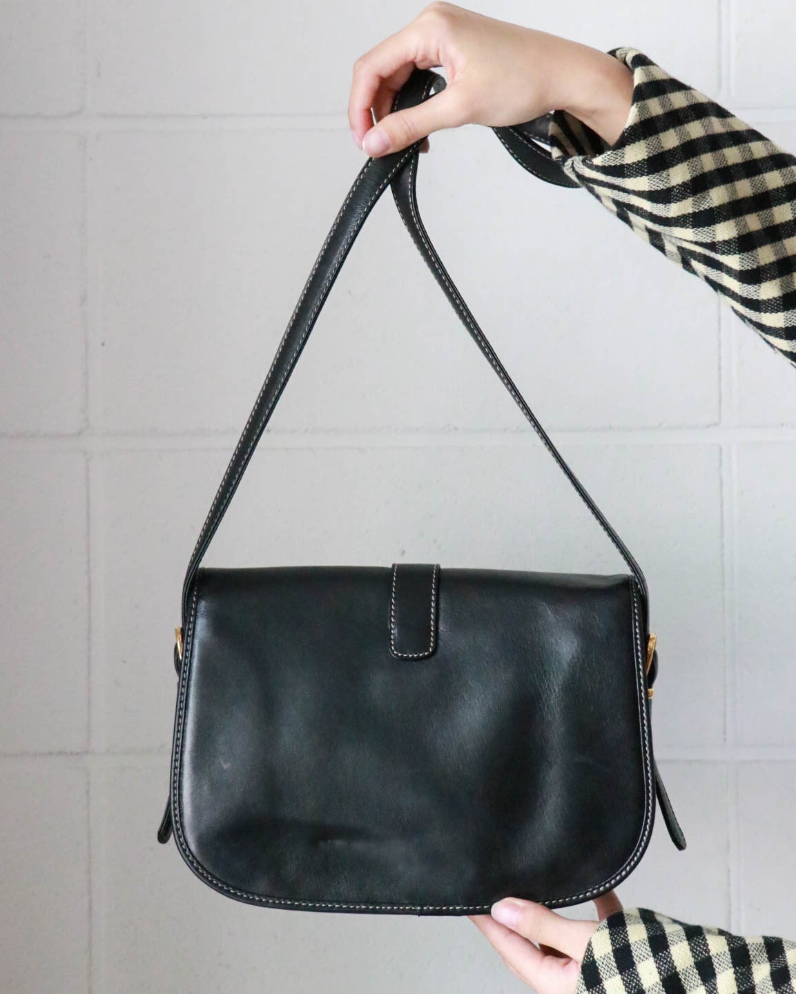 間違いないブラックレザーにホワイトのステッチがポイントのシンプルでありながら珍しいデザイン。