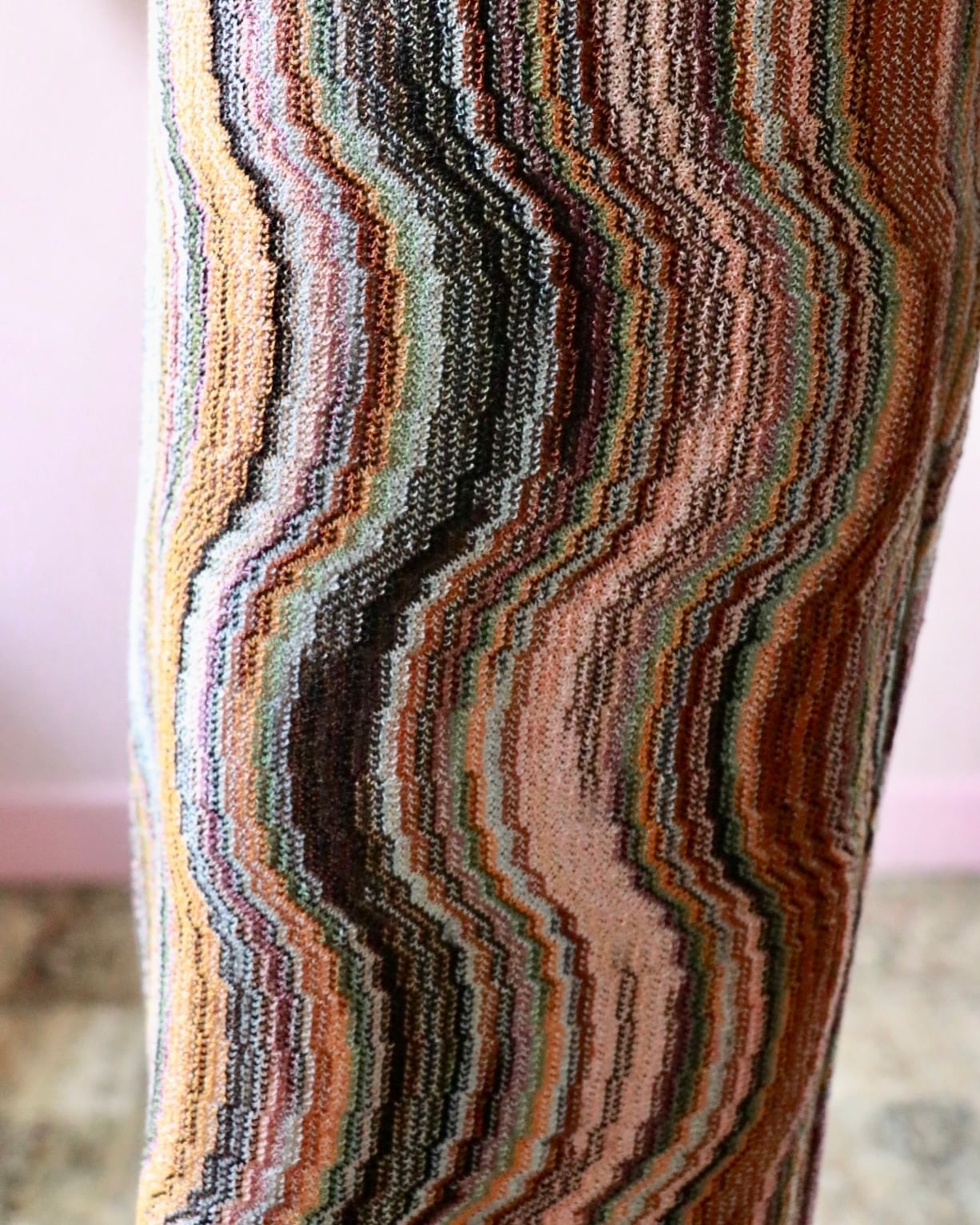 デザインの要になっているミッソーニのアイコン的マルチカラーニット。