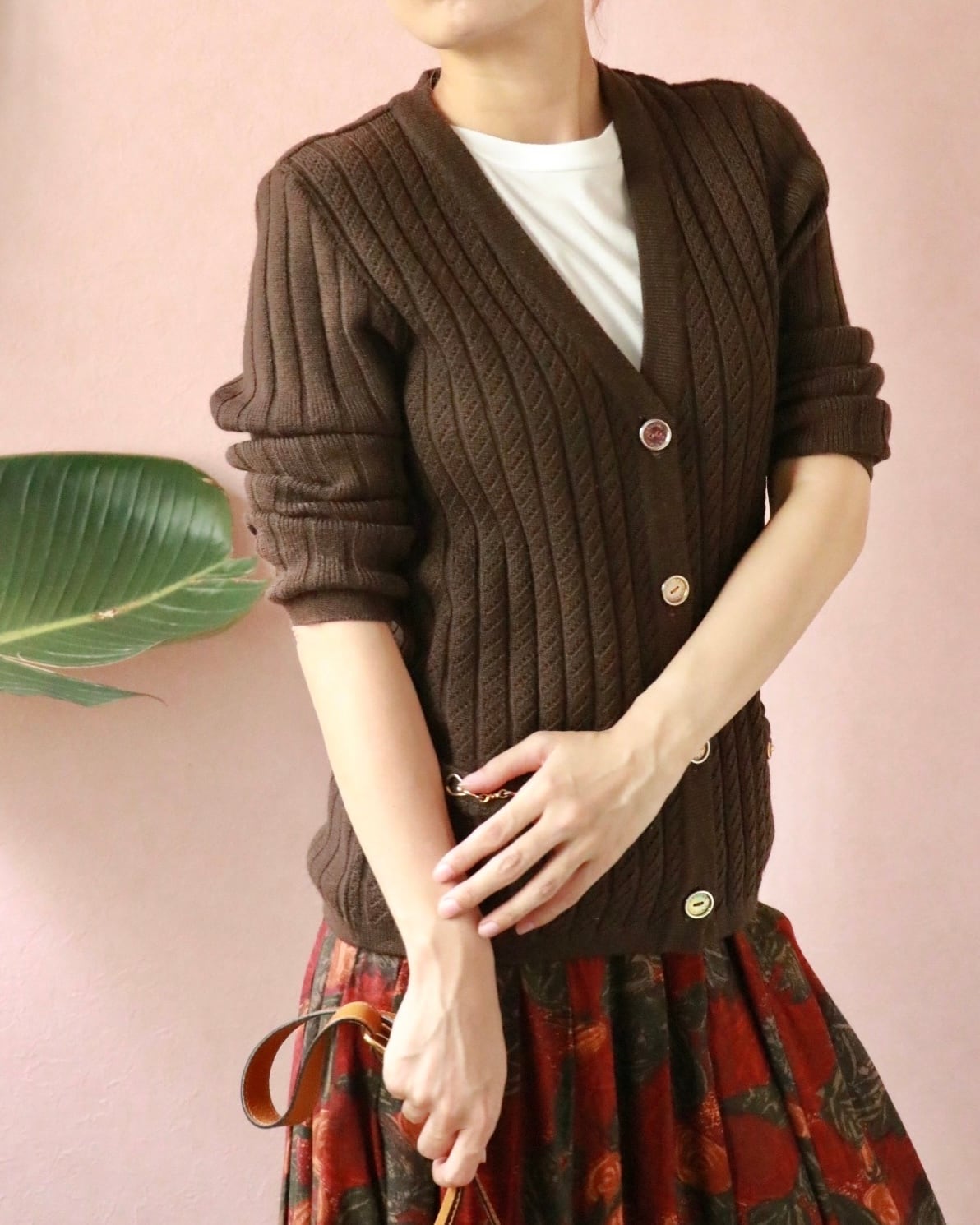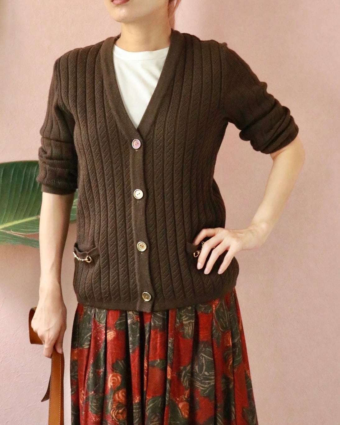 シンプルながらも存在感のあるセリーヌのニットカーディガンが入荷。丁寧に編み立てられたリブ模様と、ポケットのチェーンディテールが控えめな個性をプラス。スカートはもちろんデニムにもスラックスにも馴染むタイムレスな1着です。
