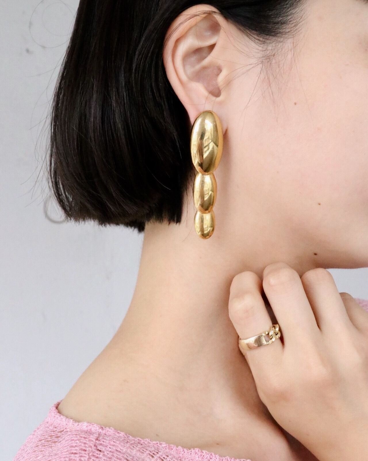 大小異なるオーバル達が綺麗に連なるこちらのピアスはデッドストック。