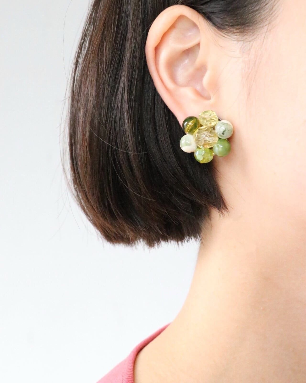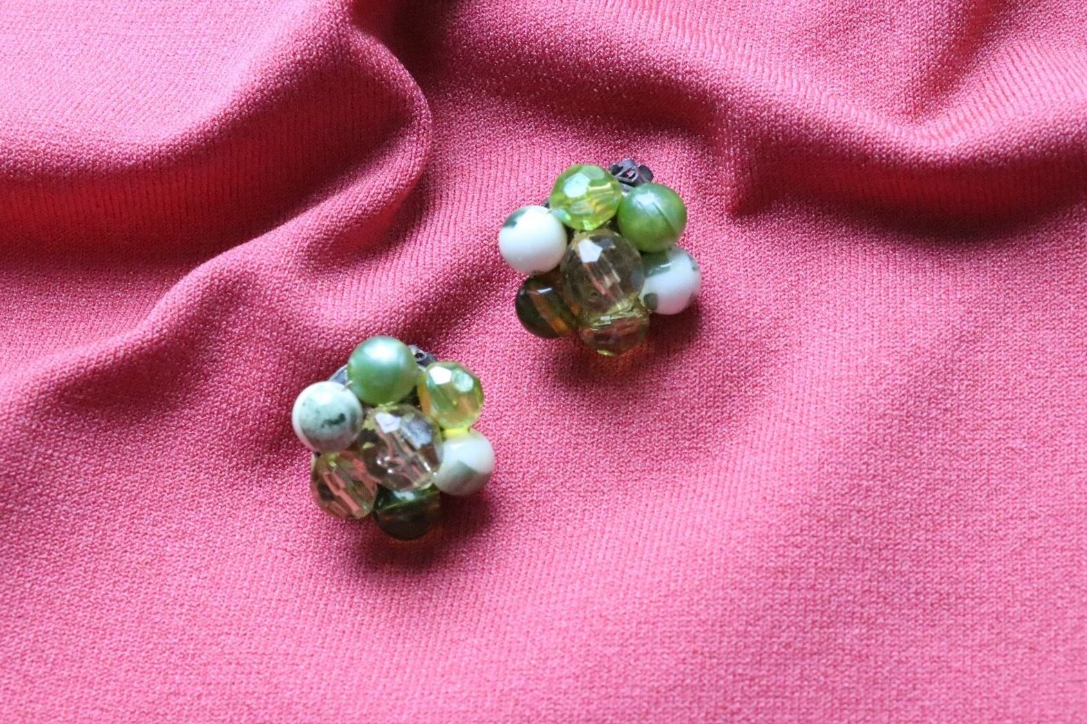 緑を中心に色彩が美しいデッドストックイヤリングです。